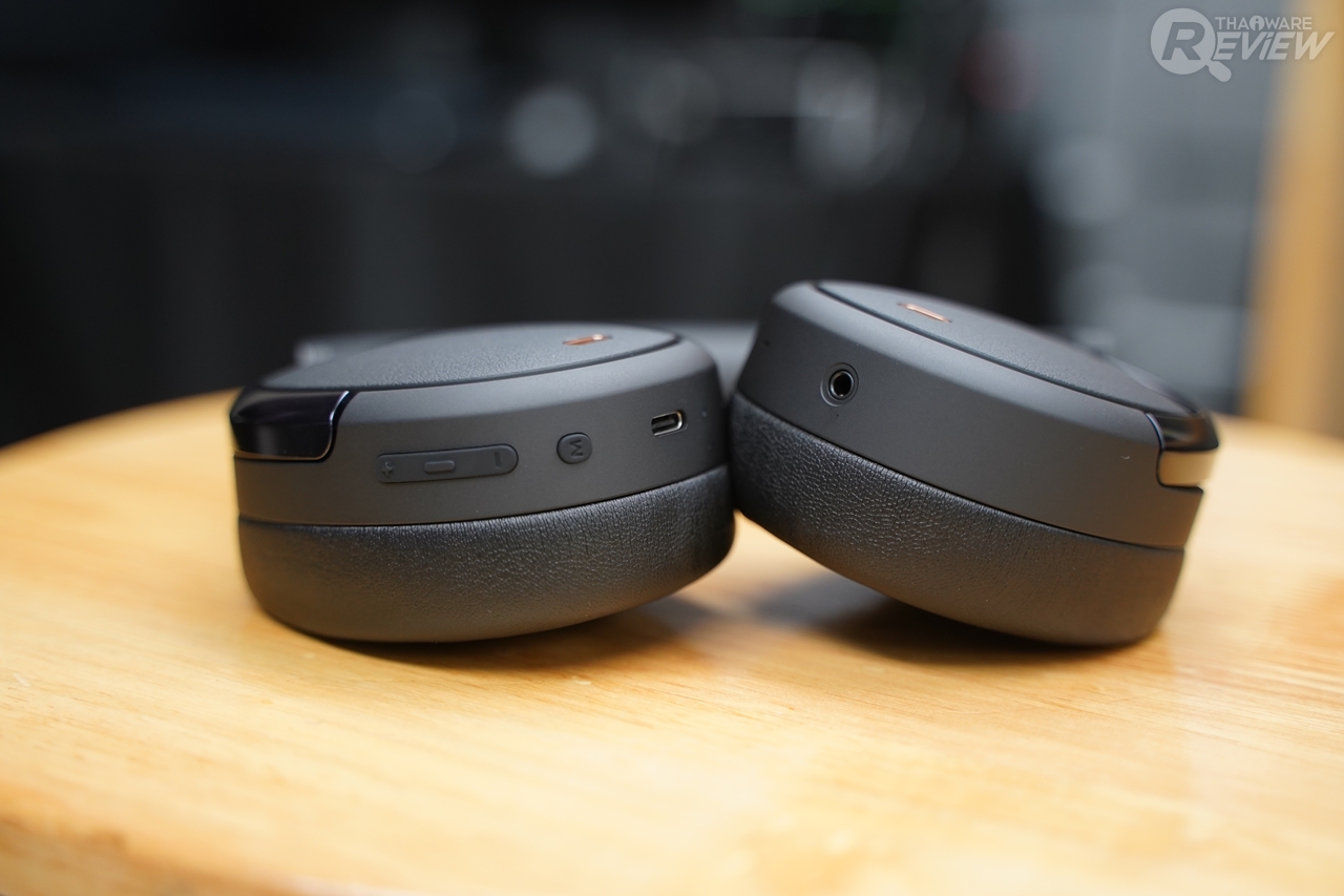 ส่วนภายนอกหูฟัง มีปุ่มและพอร์ตต่าง ๆ มาให้ดังนี้