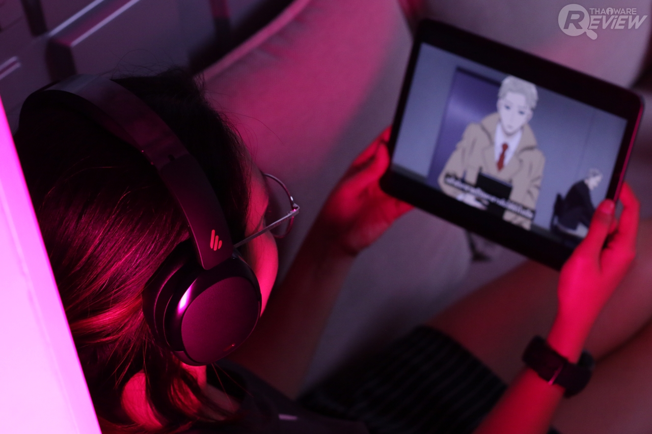 ส่วนการใช้งานดูหนัง ดูซีรีส์ ทาง Edifier ก็ใจดี มีโหมดโรงภาพยนตร์ (Theater Mode) มาให้ เมื่อทดสอบร่วมกับการดูซีรีส์ พบว่าเป็นการถ่ายทอดรายละเอียดเสียงทุกอย่างในหนังได้ชัดเจน ยังพอฟังออกว่าเสียงตัวแสดง เสียง Ambient มาจากทิศทางใด แต่ไม่ได้แยกมิติซ้าย-ขวาอย่างชัดเจน รวมถึงเสียงไม่ดีเลย์จากปากตัวแสดงอีกด้วย
