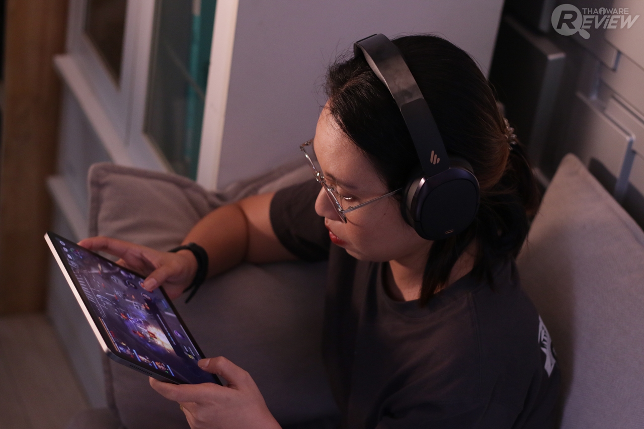 สำหรับการเล่นเกมที่บางคนห่วงว่าเสียงจะดีเลย์จากภาพมาก ๆ ขอบอกว่าเสียงจากหูฟัง EDIFIER WH950NB อยู่ในระดับที่ "แทบจะไม่ดีเลย์" เสียมากกว่า โดยการทดสอบ ใช้เกม Marvel Future Fight แล้วสังเกตภาพและเสียงขณะโจมตีต่อสู้ พบว่าระยะห่างของภาพและเสียงมีความเหลื่อมน้อยมาก ๆ เรียกได้ว่า นี่คือหูฟังไร้สายที่เหมาะแก่การเล่นเกมอย่างสบายใจ