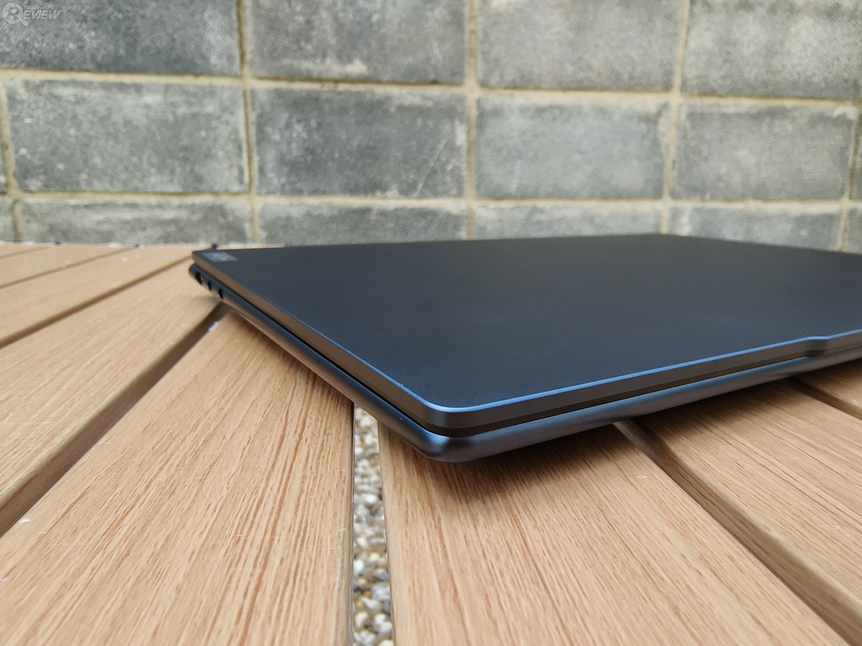โน๊ตบุ๊ค Lenovo Yoga Pro 7i มาในบอดี้โทนสีน้ำเงินอมเขียวผู้ดี (ออกน้ำเงินมากกว่าเขียว) ตัวเล็กเอวบาง แต่เป็นระดับ Military Grade มาตรฐาน MIL-STD 810H ไม่ได้หมายความว่าถึกผ่านสงครามมา แต่ผ่านการทดสอบมาแล้วว่า เมื่อเจอสภาพแวดล้อมต่าง ๆ ตัวเครื่องก็สามารถใช้งานได้ปกติตลอดอายุการใช้งาน