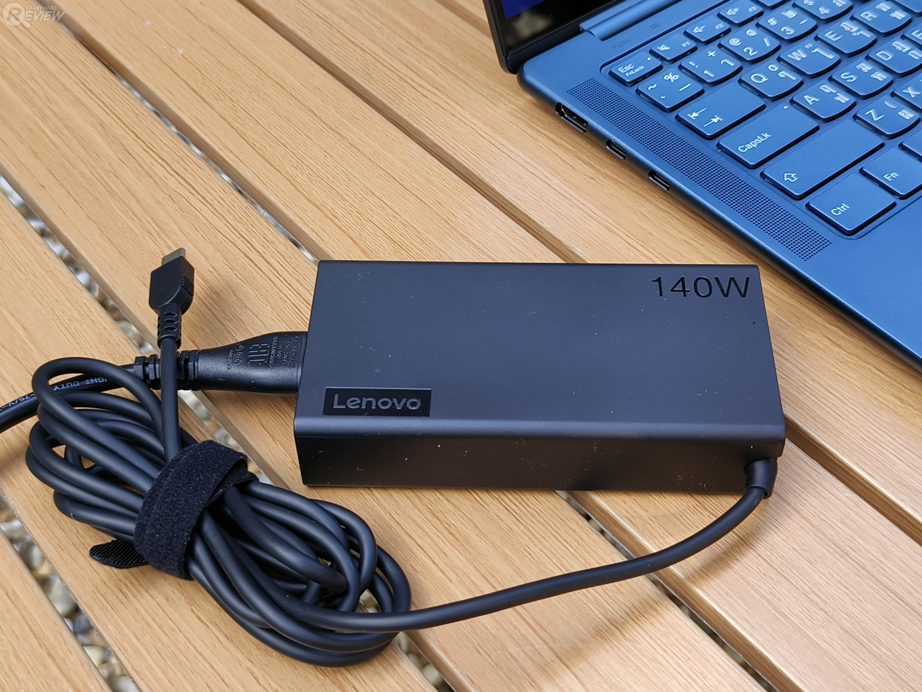 โดย Lenovo Yoga Pro 7i รุ่นนี้ จะใช้ USB-C 1 ช่องสำหรับการชาร์จไฟ ซึ่งมีโหมดชาร์จเร็ว (Rapid Charge) 15 นาที ใช้งานได้ 3 ชั่วโมง ด้วยอะแดปเตอร์ 140W