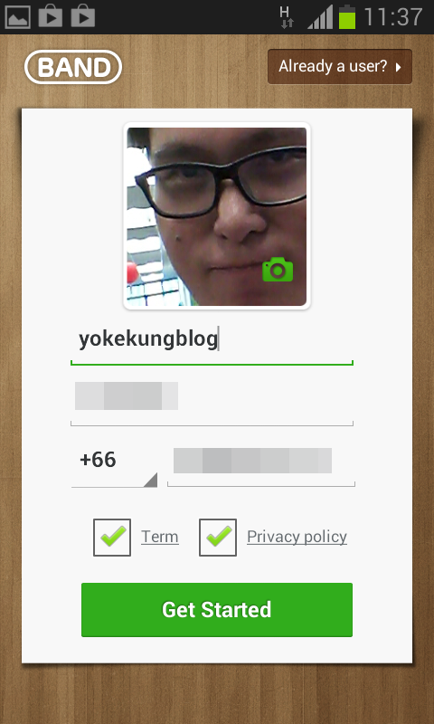 การใช้งานครั้งแรก เราจะต้องสร้าง Profile ของเราก่อน จากนั้นสร้าง BAND หรือวงเพื่อน สังเกตว่ามีไอคอน Family, Friend, Couple, School ผมเลือกตั้ง Faminily ว่า Nalin ซึ่งเป็นชื่อลูกผม