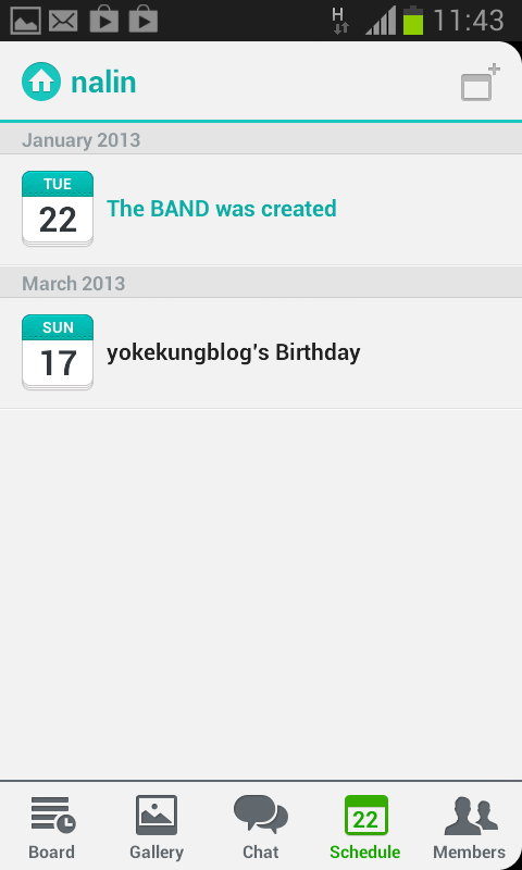 ในเมนู Schedule จะมีตารางของแต่ละคนใน BAND โดยมีวันเปิด BAND และวันเกิดผม หากมีสมาชิกคนอื่นๆก็จะมีวันเกิดของสมาชิกแสดงขึ้น