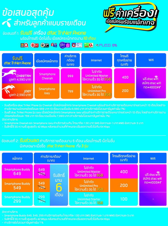 ดูแพ็คเก็จเพิ่มเติมที่ https://www.dtac.co.th/device/dtac-trinet-phone/cheetah.html