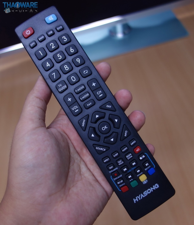 หน้าตารีโมตของ Hyasong ใช้งานง่าย มีปุ่มทิศทาง 4 ทิศ สำหรับเลื่อนเมนูต่างๆ