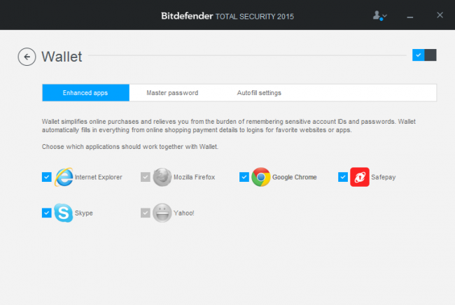 Bitdefender Total Security 2015 ยังสามารถทำงานร่วมกับโปรแกรมอื่น เพื่อป้องกันอันตรายที่อาจเข้ามาจากทางโปรแกรมอื่นได้ด้วย ประกอบไปด้วย