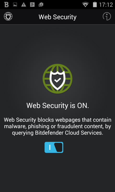 Web Security เปิดเพื่อให้แอปฯ Bitdefender ตรวจสอบลิงค์อันตรายในเว็บที่อาจมีการฟิชชิ่ง หรือหลอกให้เราติดตั้งมัลแวร์ โดยอ้างอิงฐานข้อมูลจาก Cloud Services
