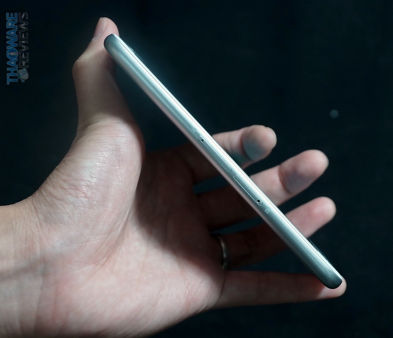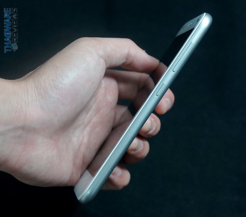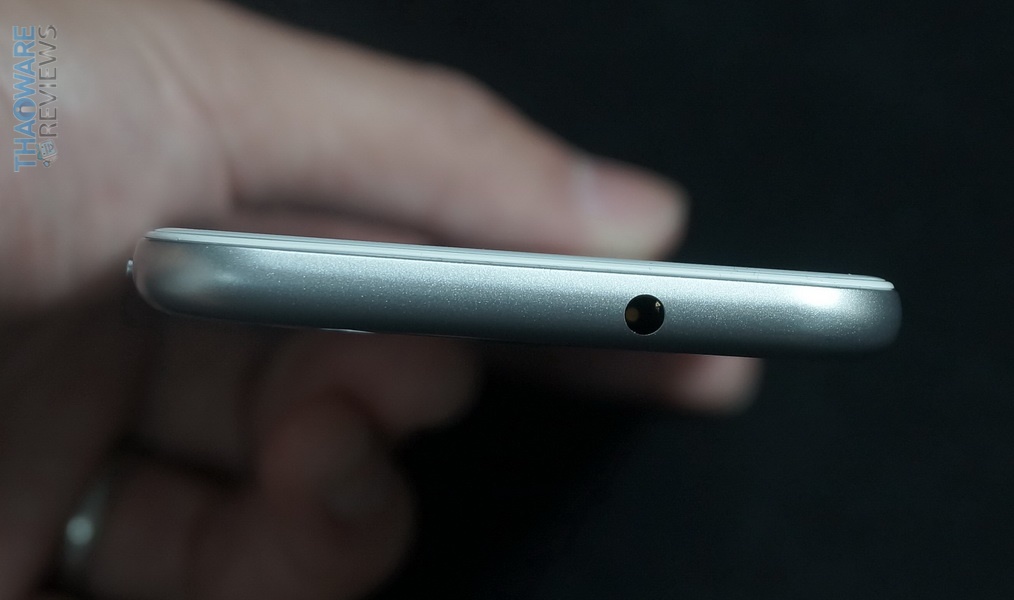 สังเกตว่าขอบจอค่อนข้างบางมากทีเดียว จอของรุ่นนี้มีทีเด็ดตรงที่เป็น 2.5D และมีเทคโนโลยี In-cell ทำให้จอมีความบางเป็นพิเศษให้สัมผัสในการทัชหน้าจอที่ดีกว่าเดิม แถมทำให้ตัวเครื่องบางเพียง 7.7 มม. อีกด้วย