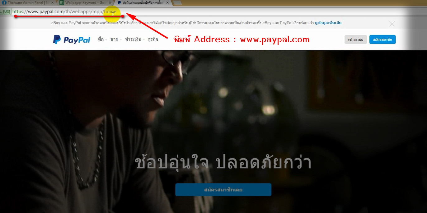 1. เข้าไปที่เว็บไซต์ www.paypal.com
