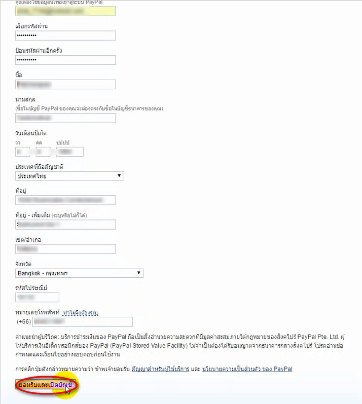 3. ระบบจะให้กรอกข้อมูลส่วนตัวลงไป เมื่อกรอกครบถ้วนแล้วให้กดยอมรับและเปิดบัญชี