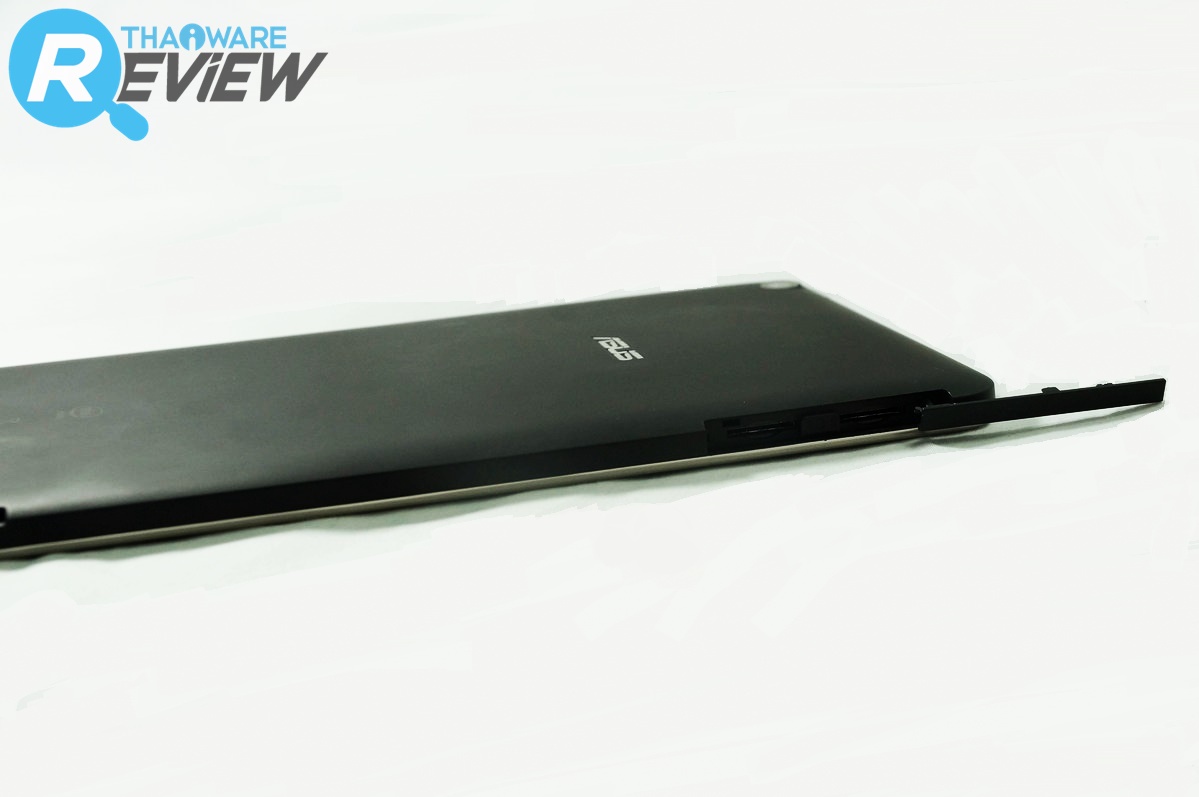 ส่วนด้านข้างทางซ้ายมือจะเป็นช่องใส่ซิมการ์ด โดยสำหรับ ASUS Fonepad 7 นี้ สามารถใส่ซิมการ์ดได้ทั้งสองซิมเป็นแบบนาโนซิมซึ่งช่องใส่ซิมนี้จะอยู่ทางด้านบน ส่วนด้านล่างจะเป็นช่องใส่ microSD