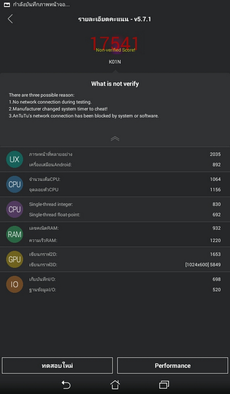 สำหรับผลคะแนนที่วัดได้จาก Antutu นั้นก็ถือว่าทำได้ในระดับที่พอใช้ คะแนนไม่หวือหวาอะไรมากนักเมื่อเทียบกับแท็บเล็ตรุ่นที่ใกล้เคียง โดยคะแนนรวมที่ได้จาก Antutu นั้น ASUS Fonepad 7 ทำได้ที่ 17541 คะแนน ซึ่งก็เป็นคะแนนที่สมเหตุผลหากเทียบกับราคาที่ไม่แพงของ ASUS Fonepad 7 ตัวนี้