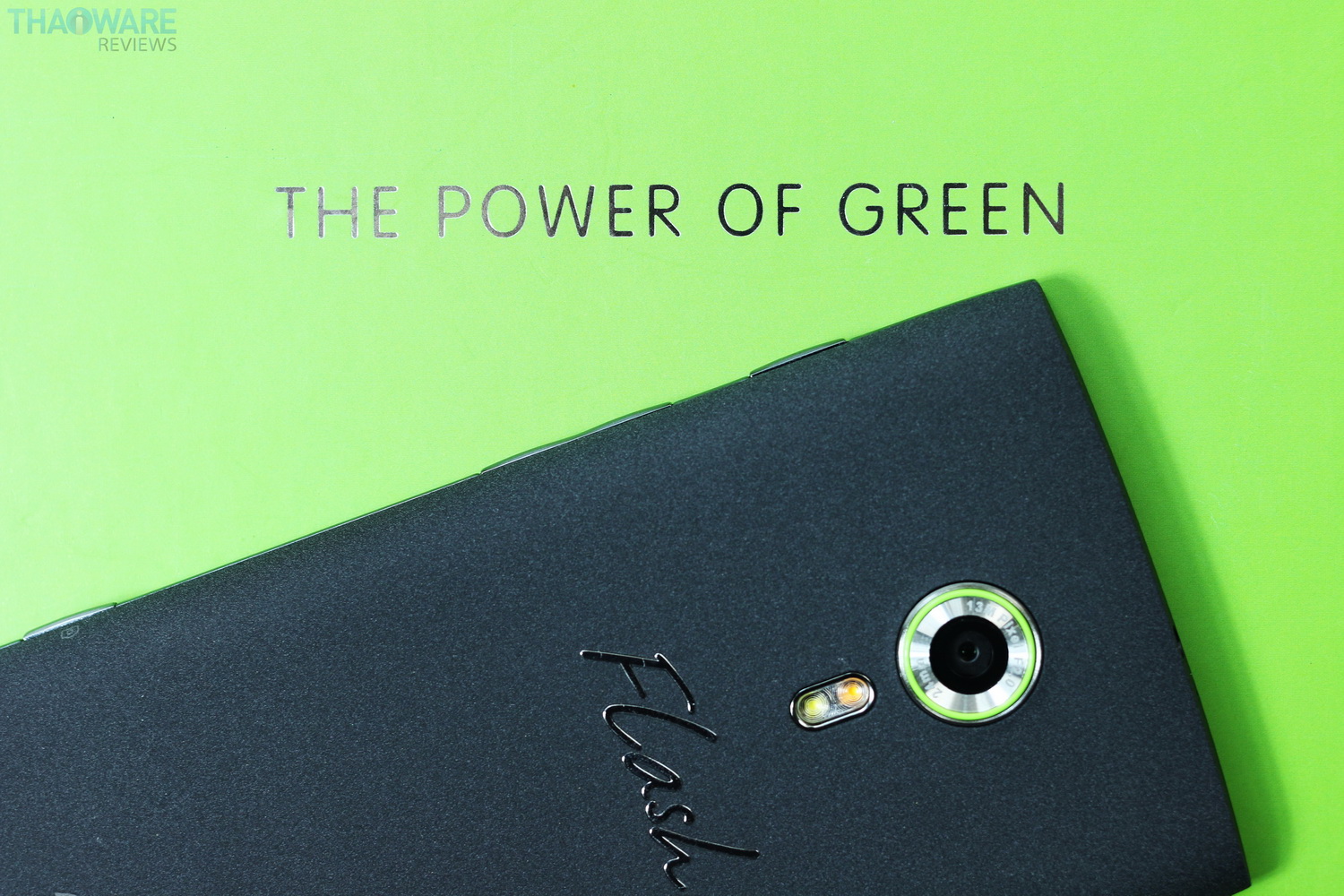 ตัวเครื่อง Alcatel Onetouch Flash 2 มีดีไซน์ที่เป็นเอกลักษณ์เฉพาะตัวทีเดียว หน้าตาสวยงามขอบด้านหน้าเป็นโลหะเงา แต่ก็เป็นรอบนิ้วมือง่ายไปหน่อย ปุ่มโฮมเป็นวงสีเขียวเก๋ๆ
