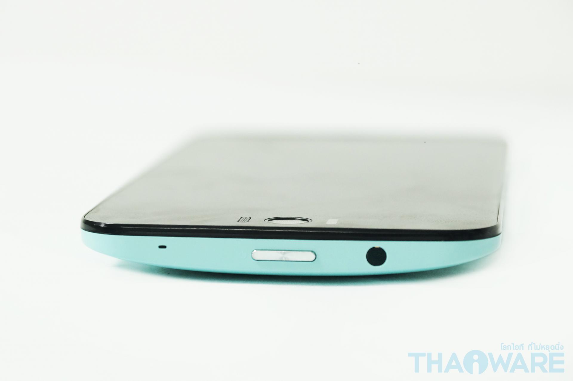 ปุ่ม Power ที่ใช้ในการเปิดปิดหน้าจอจะอยู่ที่บริเวณขอบด้านบนเหนือตัวกล้อง ซึ่งหลายคนอาจจะยังไม่ค่อยคุ้นเคยเท่าไรนัก และมีรูเสียบสายหูฟังขนาด 3.5 mm อยู่ด้านข้าง