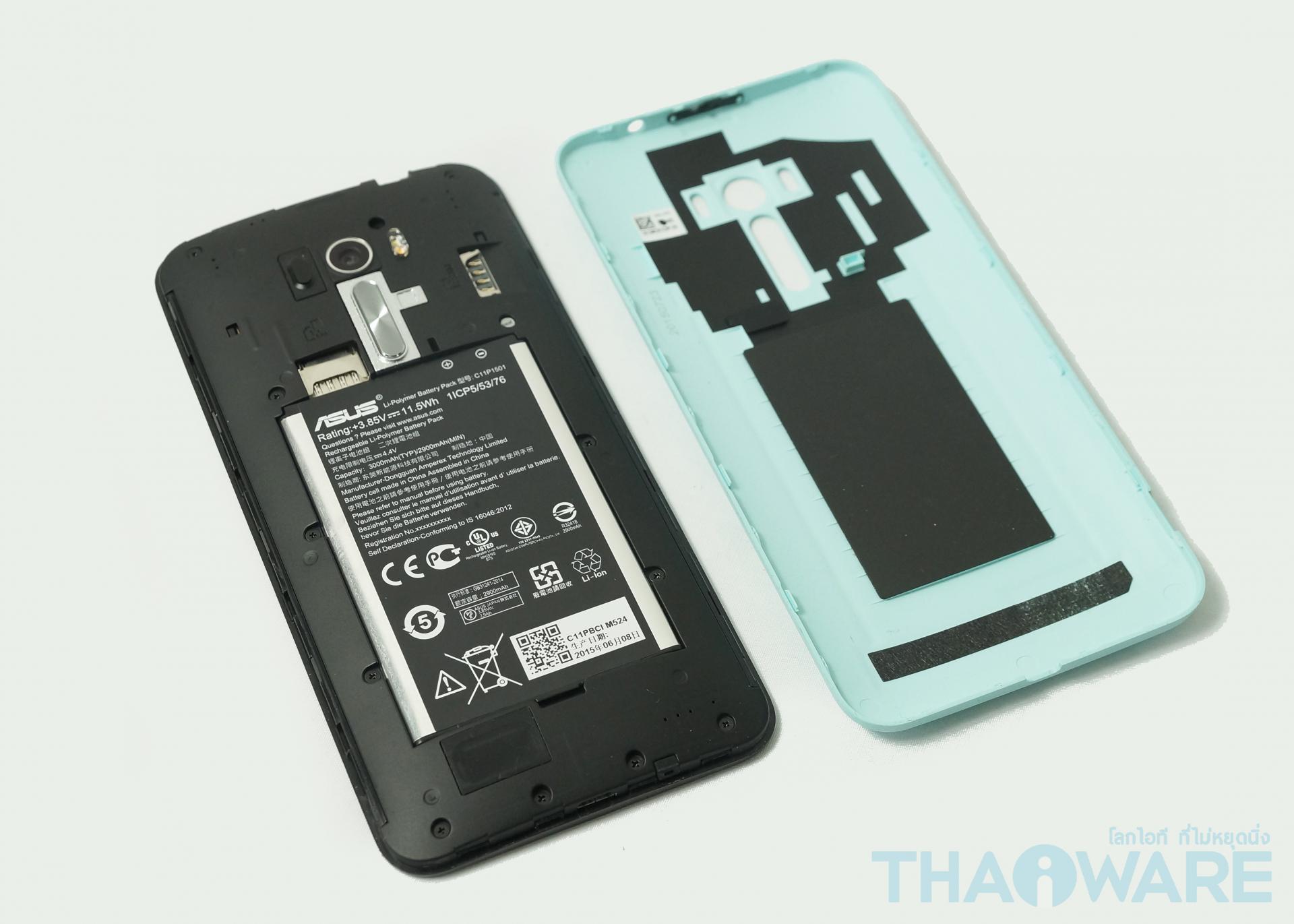 เมื่อเปิดแผ่นฝาหลังออกมาจะพบกับ แบตเตอรี่ ขนาดความจุ 3,000 mAh และช่องใส่ซิมการ์ด 1, 2 และ microSD การ์ด