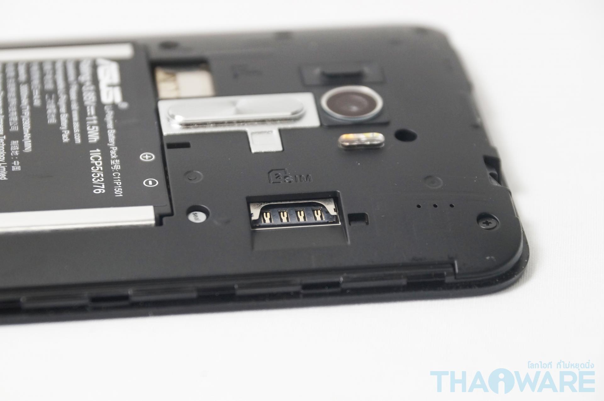ช่องใส่ซิมการ์ด 1 และ microSD จะอยู่เหนือแบตเตอรี่ ทางด้านซ้ายมือของปุ่มปรับระดับเสียง โดยใส่ในลักษณะซ้อนอยู่ในช่องเดียวกัน