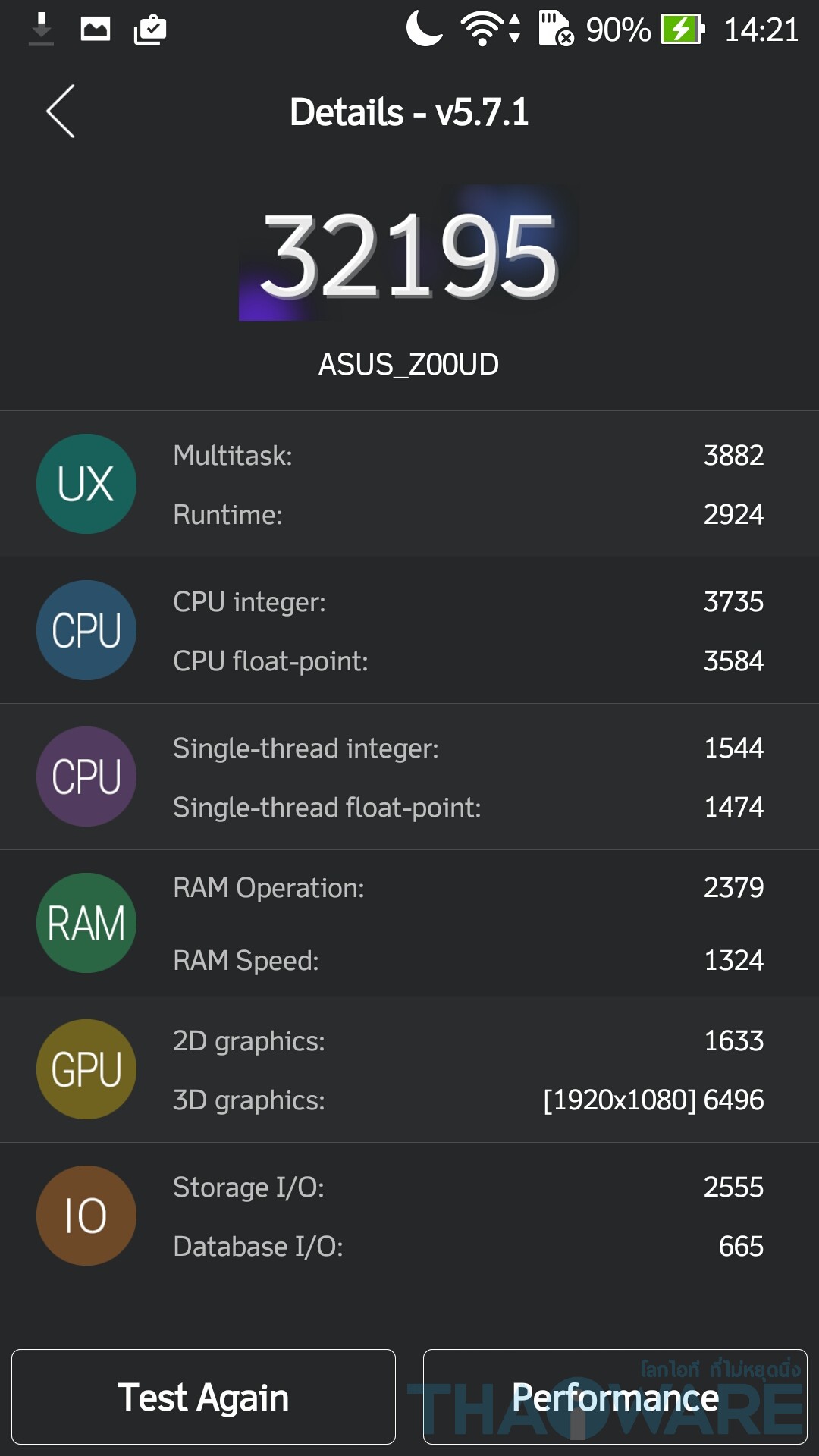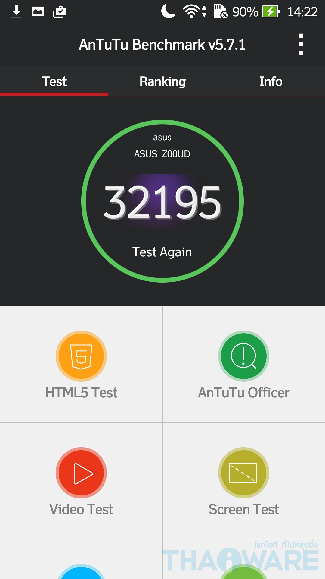ผลการทดสอบประสิทธิภาพโดย Antutu Bencemark : คะแนนโดยรวมจัดอยู่ในระดับที่ดีเลยทีเดียว