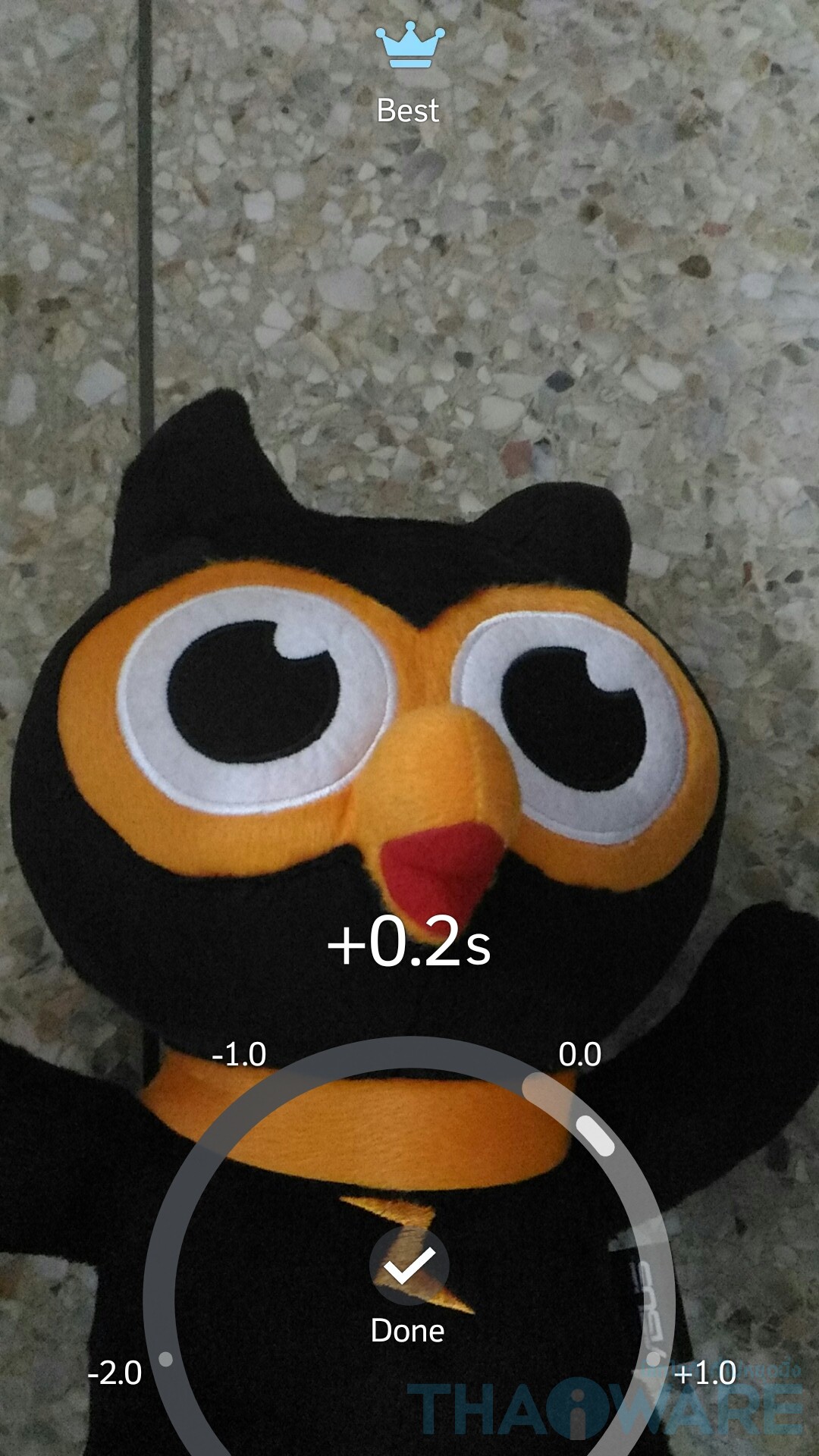 โหมด Time Rewind ใช้สำหรับการถ่ายภาพแบบที่เราสามารถเลือกภาพช่วงเวลาสั้นๆ ของการถ่ายภาพได้ โดยที่สามารถบันทึกภาพในช่วงเวลา 2 วินาทีก่อนการกดถ่ายภาพ และ 1 วินาทีหลังจากการกดถ่ายภาพไปแล้ว ซึ่งจากที่ลองเล่นแล้ว ช่วงเวลาที่ภาพชัดที่สุดก็คือช่วงเวลาที่ 0.0 หรือก็คือภาพในช่วงที่เรากดถ่ายภาพนั่นเอง