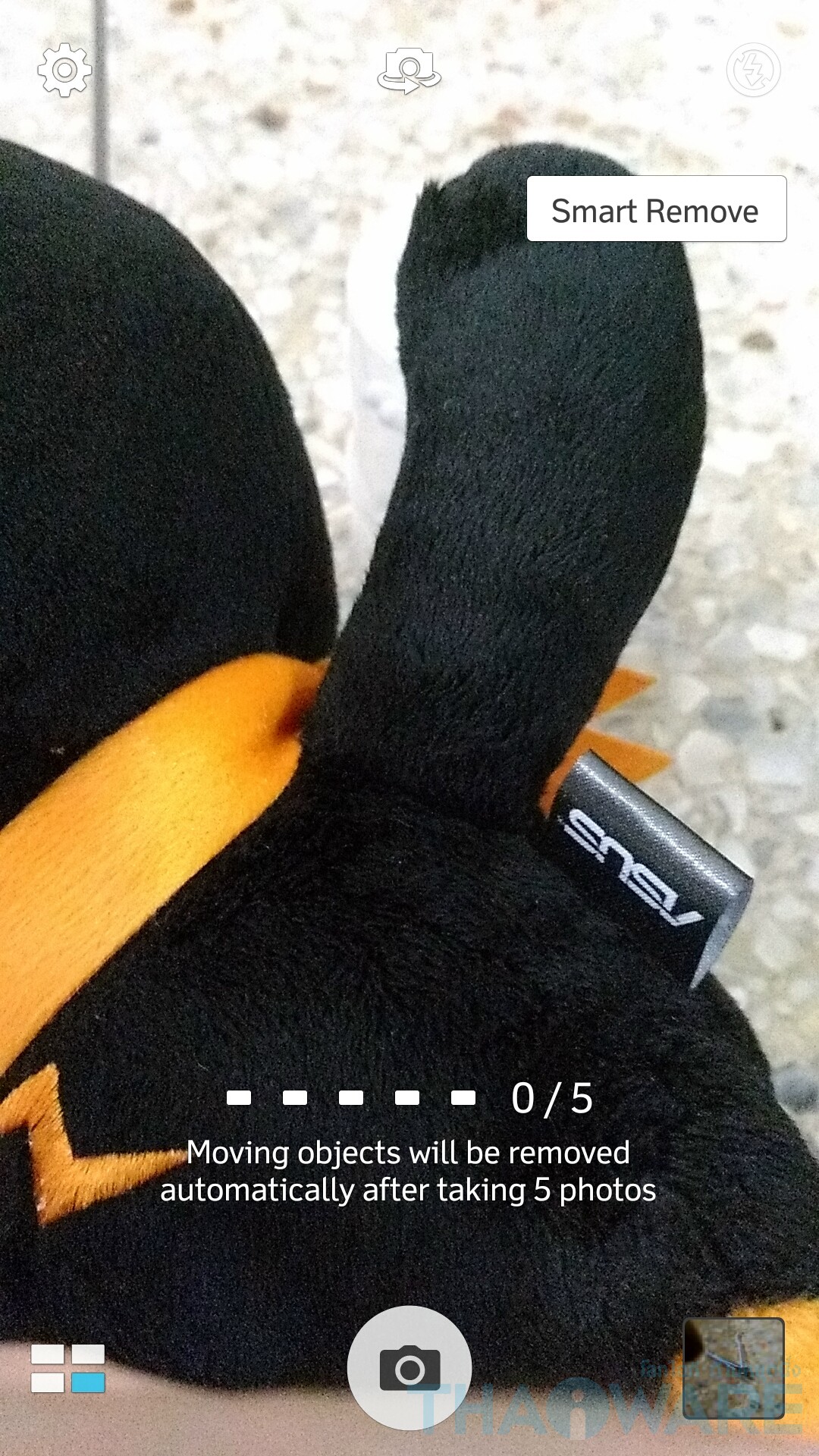 โหมด Smart Remove คือการถ่ายภาพแบบ 5 ช็อต โดยที่แต่ละช็อคจะลบสิ่งที่กำลังเคลื่อนไหวไปมาออกจากภาพโดยอัตโนมัติ รวมถึงการช่วยปรับภาพที่เบลอจากการสั่นไหวได้ในระดับหนึ่งด้วย