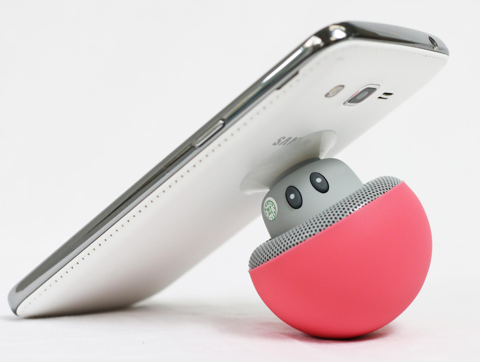 สามารถใช้ตัวจุ้บติดกระจกของลำโพงติดที่ด้านหลังของมือถือ เพื่อใช้เป็นฐานตั้งให้กับมือถือได้อย่างเก๋ไก๋