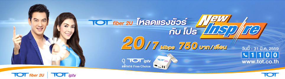 สำหรับผู้ที่ชอบความเร็วแรงมาดูกันที่บริการ TOT fiber2U นี้มีโปรโมชั่น“New Inspire” ที่เน้นกลุ่มที่ชื่นชอบเน็ตแรงๆ เริ่มต้นที่สปีด 20 Mbps ถึง 55 Mbps ด้วยราคาเริ่มต้น 750 บาท/เดือน แถมมี Bundle กับบริการ TOT iptv แพ็กเกจ Free Choice อีก เหมาะมากเลยกับผู้ที่มีไลฟ์สไตล์ชอบดูทีวี ดูหนังซีรีย์หรือรายการต่างๆ ได้มากถึง 100 กว่าช่อง ภาพคมชัดคุณภาพระดับ HD ไม่ว่าจะดูทีวีไป ใช้งานอินเตอร์เน็ตไปได้พร้อมกัน รวมทั้งดูผ่านทางทีวีแบบ Smart TV ก็ทำได้แบบชิลๆ เพลินๆ