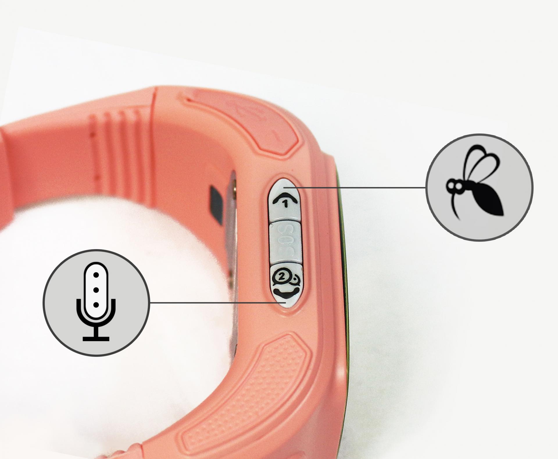หากกด ปุ่มหมายเลข 1 สองครั้งติดกัน จะเป็นการเปิด/ปิด โหมดฟังก์ชั่นการไล่ยุง โดยปล่อยคลื่นความถี่ในระดับ 16 kHz ถึง 20 kHz เพื่อขับไล่ยุงไม่ให้เข้ามาใกล้ตัวเด็กๆ ส่วนปุ่มหมายเลข 2 เมื่อกดค้างระหว่างเปิดโหมด Voice Message จะเป็นการบันทึกและส่งข้อความแบบเสียง