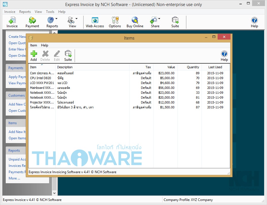 Express Invoice Plus เป็นโปรแกรมสำหรับงานออกใบกำกับภาษีในราคาย่อมเยา ที่ช่วยอำนวยความสะดวกให้ธุรกิจห้างร้าน ช่วยลดความผิดพลาดในการออกใบกำกับภาษีด้วยมือ และง่ายกว่าการออกใบกำกับภาษีผ่าน Microsoft Excel ได้เอกสารที่มีแบบฟอร์มสวยงาม ช่วยสร้างความน่าเชื่อถือให้กับธุรกิจของคุณ นอกจากความสามารถในการออกเอกสารแล้ว ก็มีความสามารถในการจัดการคลังสินค้า และความสามารถในการออกรายงานหลายรูปแบบ ที่เป็นประโยชน์ต่อการตัดสินใจทางด้านธุรกิจอีกด้วย