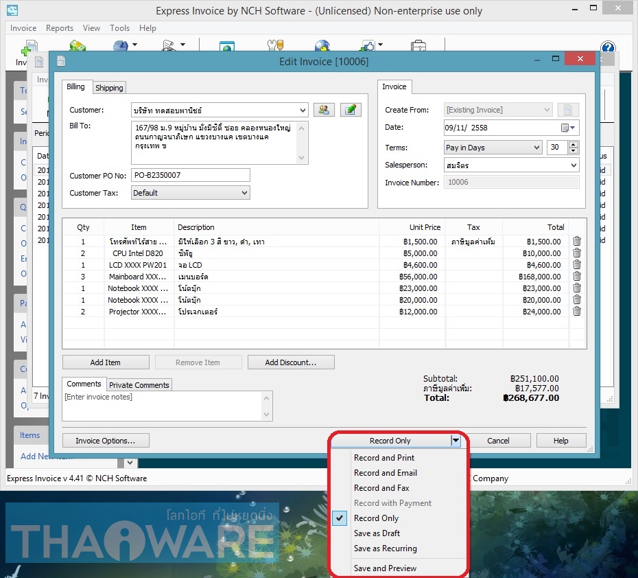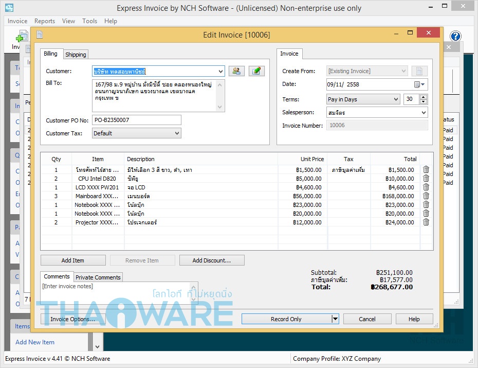 เมื่อกรอกรายละเอียดทุกอย่างเรียบร้อยแล้ว โปรแกรม Express Invoice Plus ก็พร้อมแล้วสำหรับการใช้งานครับ