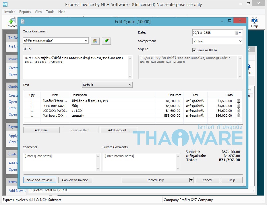 ตัวอย่าง ใบเสนอราคา ที่ออกโดยโปรแกรม Express Invoice Plus
