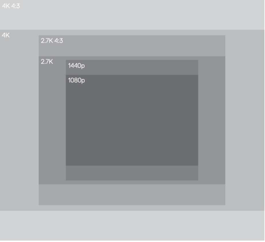 ความละเอียดของวิดีโอโดยทั่วไปจะถูกแบ่งระดับเป็น 4K, 2.7K, 1440p, 1080p เรียงตามความละเอียดจากมากไปน้อยตามลำดับ และแต่ละระดับจะมีอัตราส่วน (Aspect Ratio) แยกออกเป็น 16:9 และ 4:3 (ความกว้างต่อความสูงของวิดีโอ) ขึ้นอยู่กับหน้าจอแสดงผลที่รองรับ ซึ่งถ้าหากแตกออกมาเป็นจำนวนพิกเซลชัดๆ ก็จะเป็นดังนี้