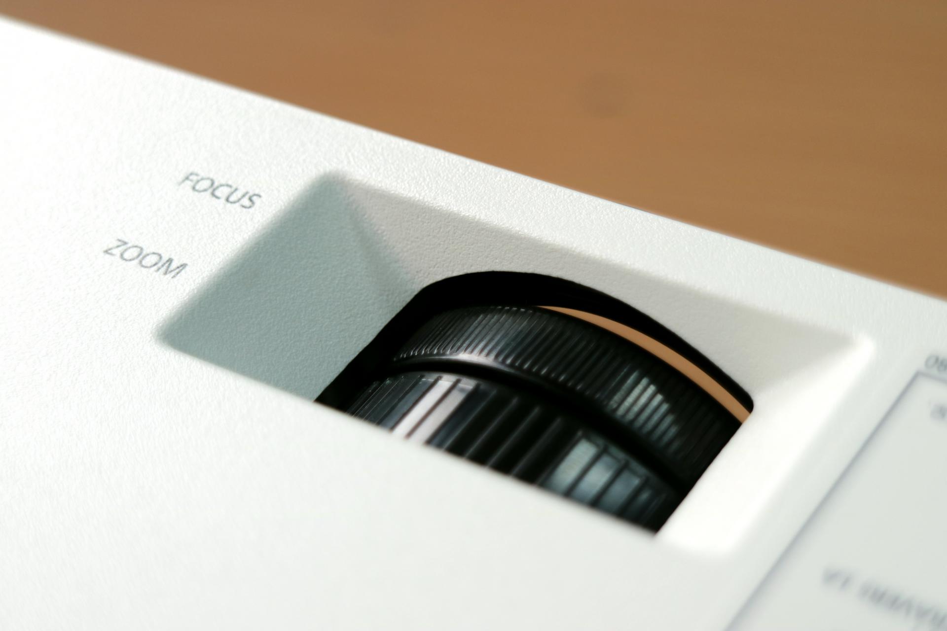 สำหรับตัวเลนส์ฉายภาพนั้น เป็นเลนส์ซูมที่ใช้ปรับขยายภาพได้ถึง 1.2 เท่า และมีค่าความสว่างของหลอดภาพที่สูงถึง 4,100 ลูเมน ทำให้สามารถฉายภาพในห้องที่มีแสงสว่างจ้าได้อย่างสบายๆ