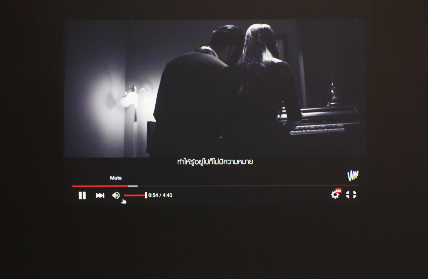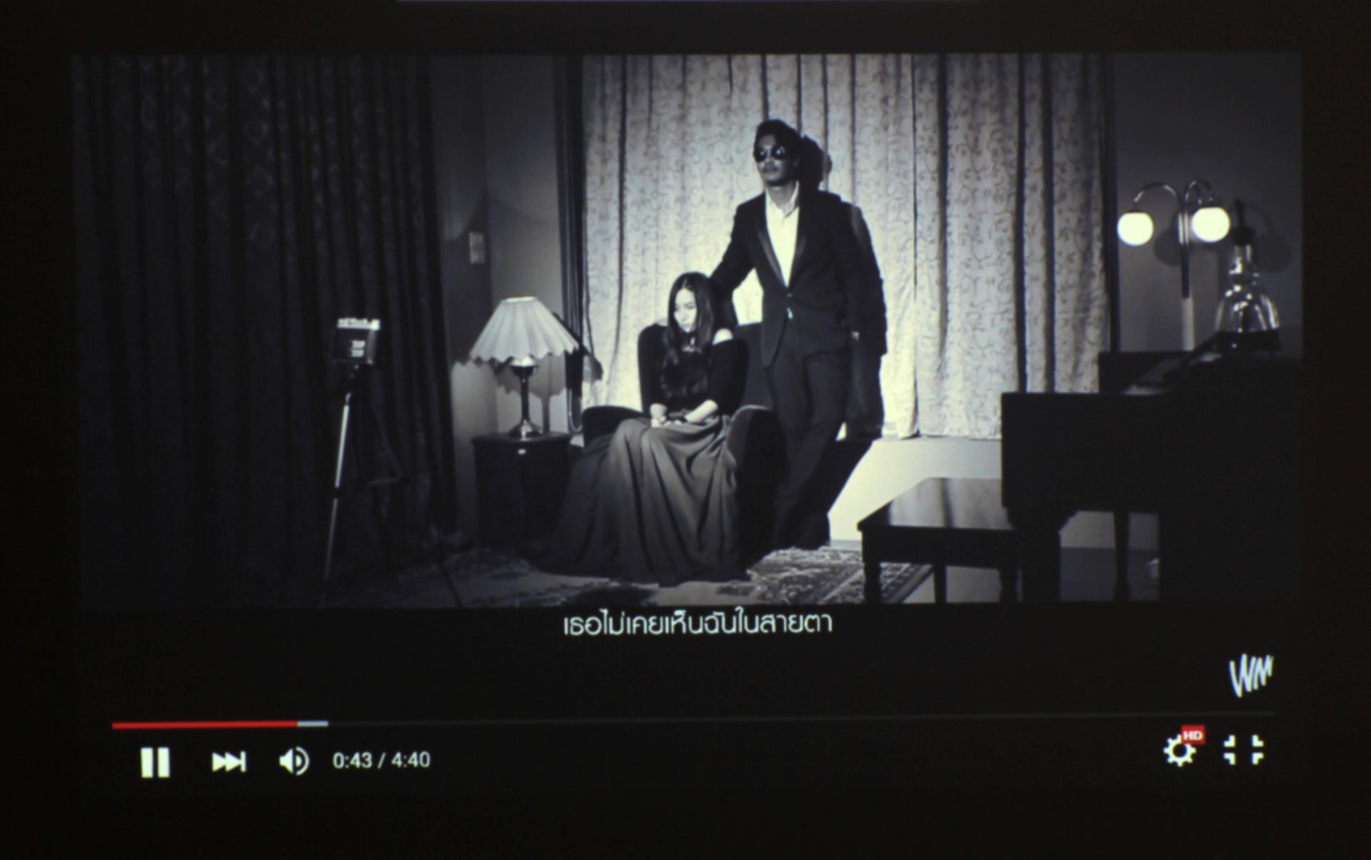 เริ่มต้นด้วยการเชื่อมต่อเครื่องโปรเจคเตอร์กับโน้ตบุ๊คด้วยสาย HDMI แล้วลองเปิดเล่นไฟล์วิดีโอจากบน YouTube เพื่อทดสอบระบบภาพและเสียงไปในตัว ได้ลองเปิด MV บน YouTube ความละเอียดสูงที่ 1080P ในสภาพของห้องที่เปิดไฟสว่างๆ ผลเป็นที่น่าพอใจมาก ภาพฉายออกมาได้อย่างคมชัด ลื่นไหลไม่สะดุด