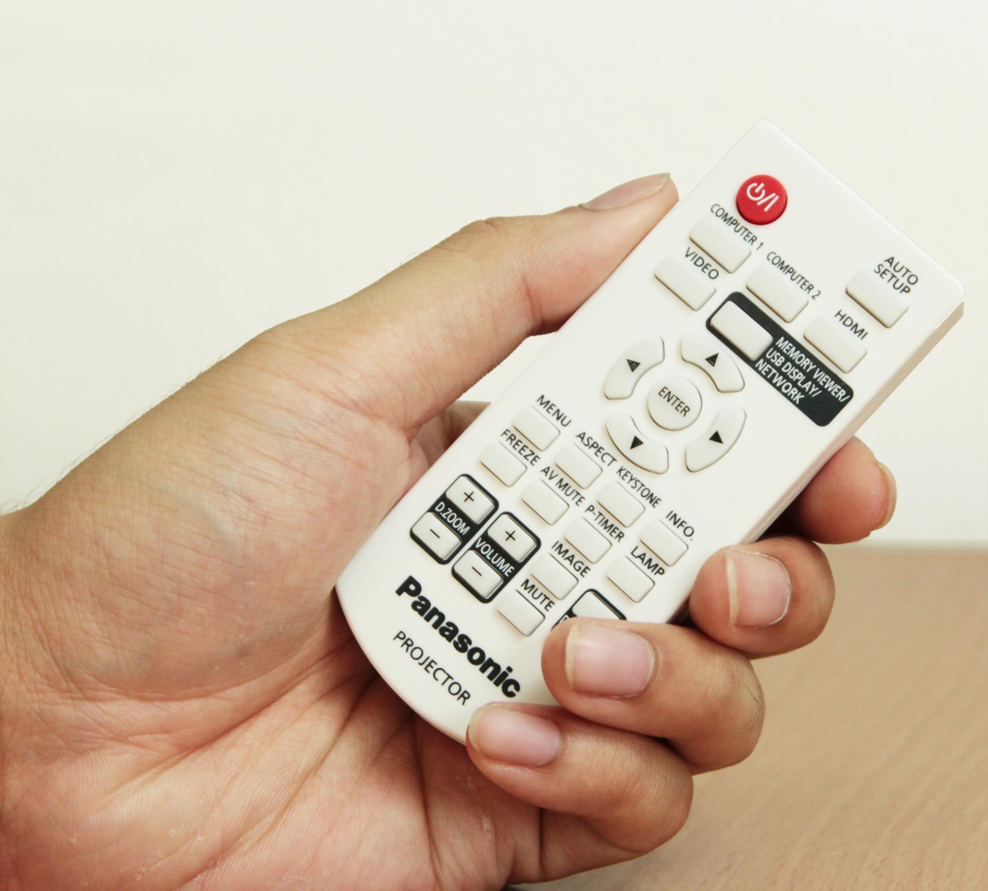 รีโมทมีน้ำหนักเบาและมีขนาดที่ค่อนข้างเล็ก สามารถจับได้พอดีมือ มีปุ่มฟังก์ชั่นลัดสำหรับเปลี่ยนโหมดการใช้งานต่างๆ และการตั้งค่าต่างๆ ได้อย่างสะดวกและรวดเร็ว