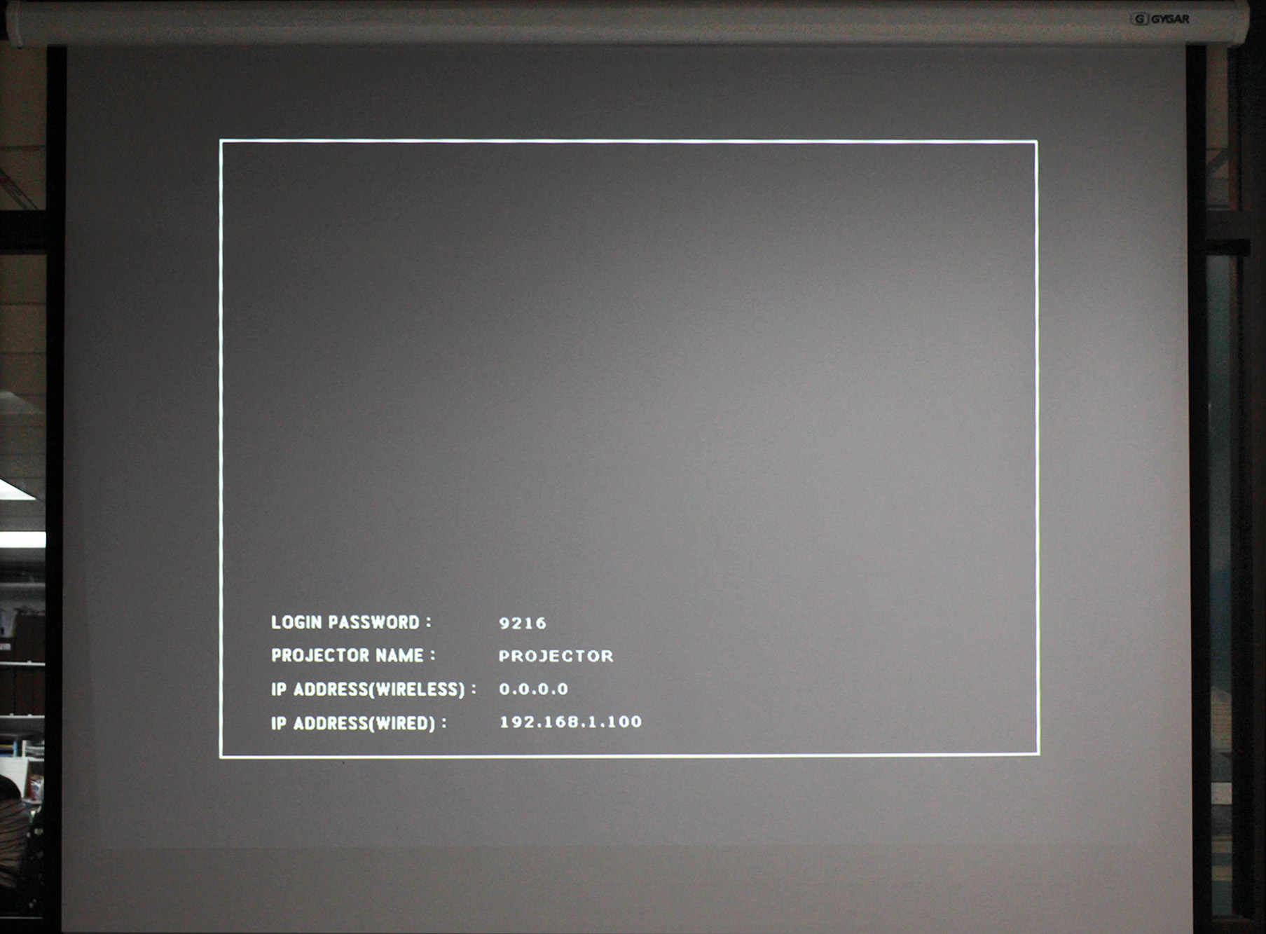 จากนั้นก็ปรับเครื่องโปรเจคเตอร์ไปที่โหมด Network (ด้วยการกดปุ่ม INPUT/ENTER บนตัวเครื่อง) เพื่อให้จอภาพฉายรหัสผ่าน 4 หลักที่จะใช้ในการเชื่อมต่อกับแอปฯ ขึ้นมา