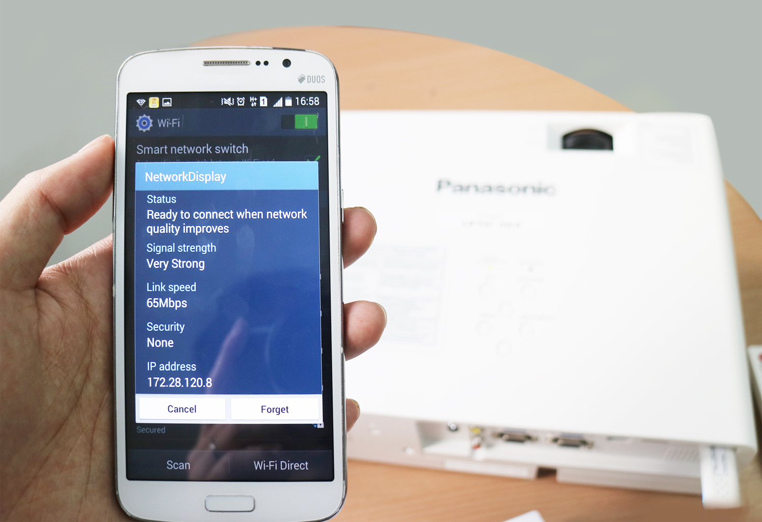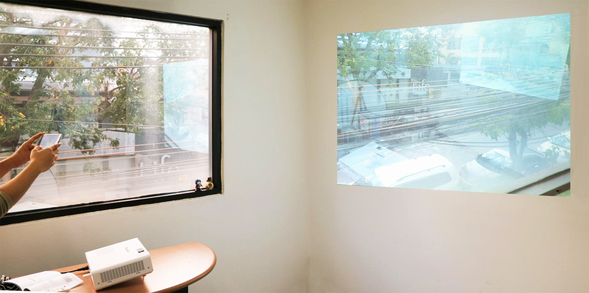 เพียงเท่านี้เครื่องโปรเจคเตอร์กับโทรศัพท์มือถือของเราก็เชื่อมต่อกันเรียบร้อยแล้ว ซึ่งถือว่าง่ายและสะดวกรวดเร็วมากเลยทีเดียว
