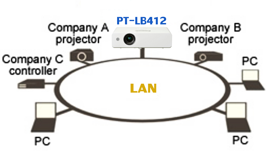 สำหรับระบบ LAN ในเครื่องโปรเจคเตอร์นั้น ถือได้ว่าเป็นระบบที่สำคัญและจำเป็นมากสำหรับในธุรกิจและองค์กร ซึ่งส่วนมากมักจะมีอยู่ในเครื่องโปรเจคเตอร์เฉพาะรุ่นที่มีราคาสูงๆ เท่านั้น สามารถควบคุมการใช้งานร่วมกับเครื่องโปรเจคเตอร์และคอมพิวเตอร์เครื่องอื่นๆ ผ่านทางระบบเครือข่ายภายในได้อย่างสะดวกรวดเร็ว นอกจากนี้ยังใช้ในการเล่นอินเทอร์เน็ต เปิดเว็บไซต์ต่างๆ ผ่านทางฟังก์ชั่น Web Pages ในแอปพลิเคชันบนมือถือได้