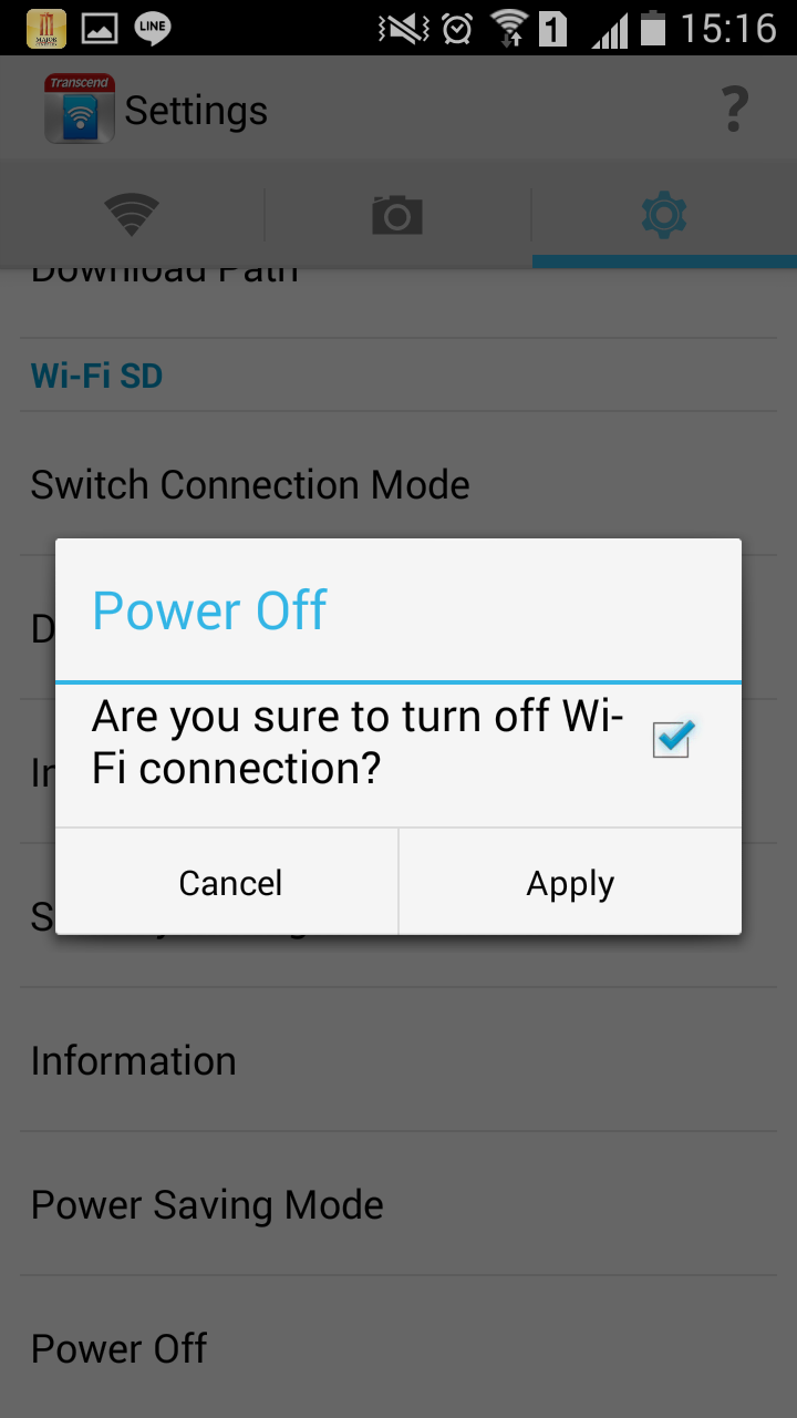 ตัวเลือก Power Off ก็คือการสั่งปิด Wi-Fi ทันที สำหรับคนที่เปิดกล้องขึ้นมาถ้าไม่ให้การ์ดปล่อย Wi-Fi ก็สามารถสั่งปิดได้เลย แต่ก่อนจะปิด Wi-Fi บนตัวการ์ดได้ก็ต้องเชื่อมต่อผ่านแอปก่อนล่ะนะ