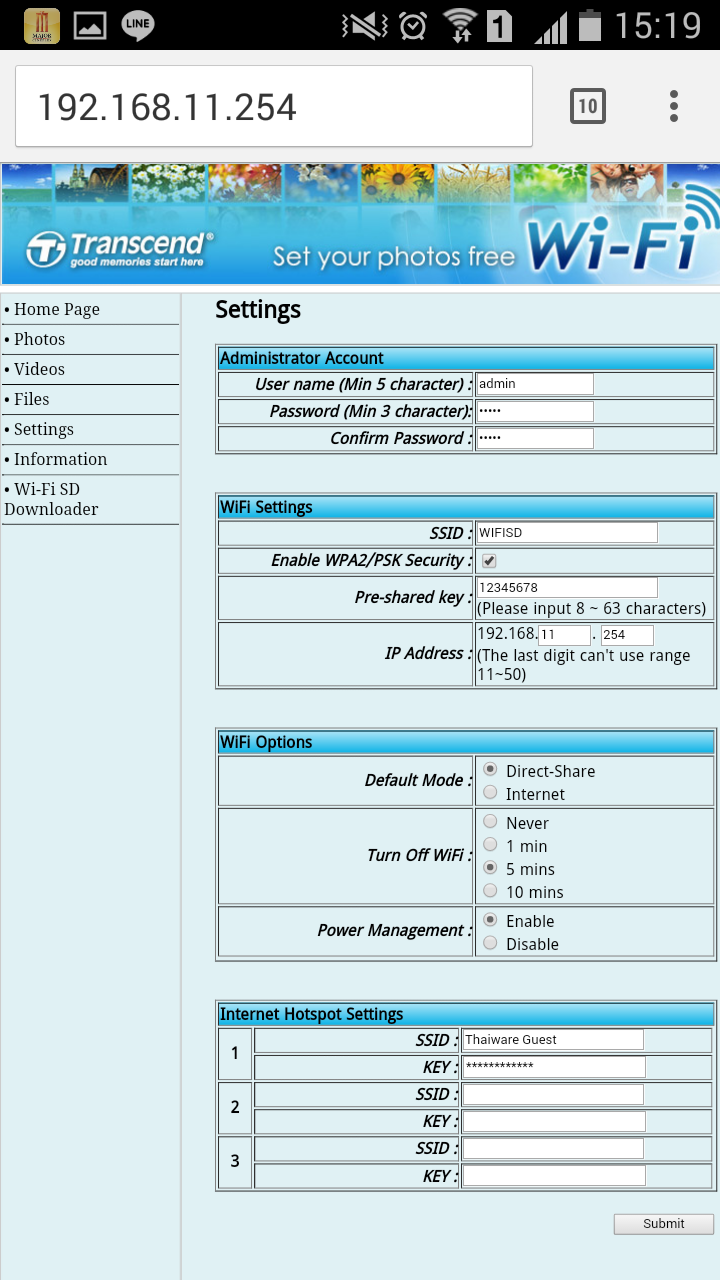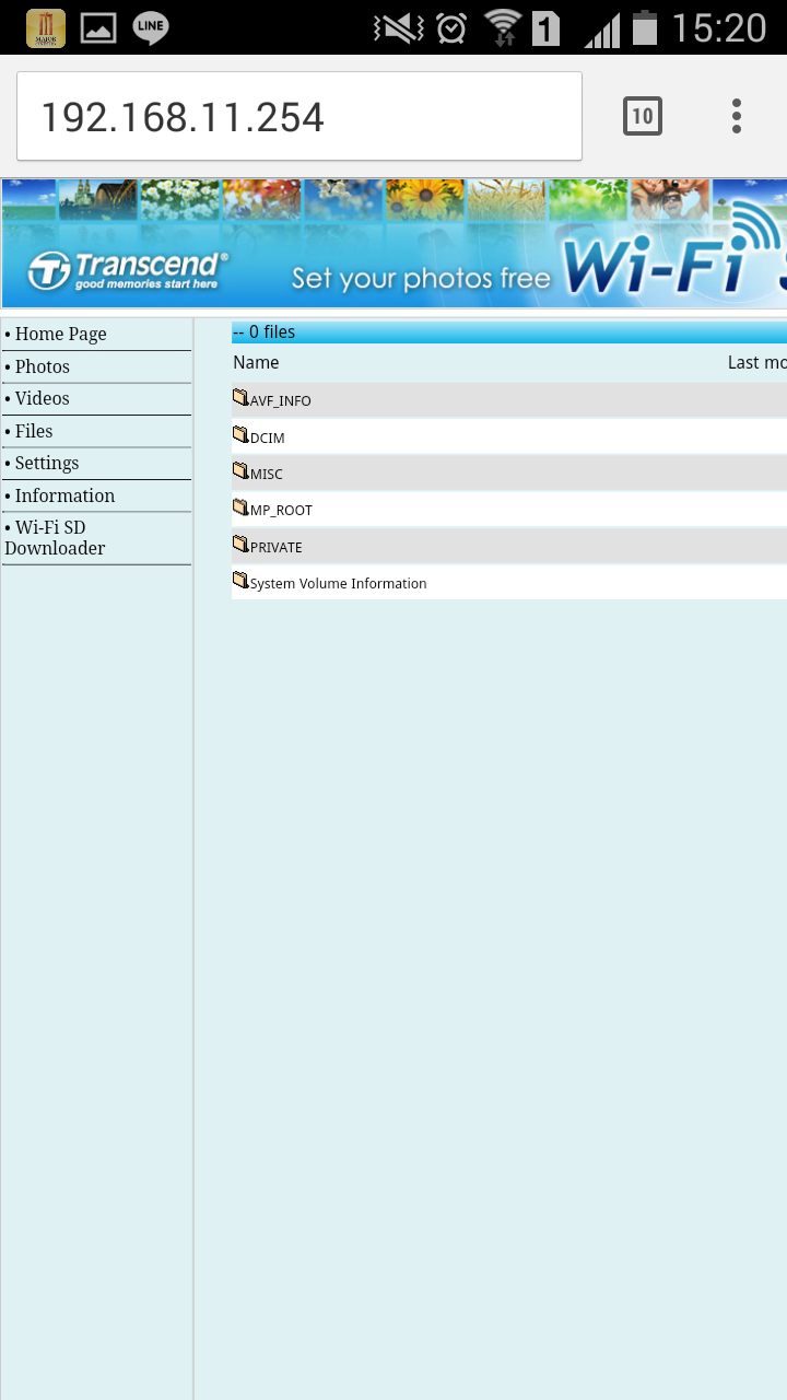 เราก็จะเข้าสู่หน้าเว็บของเจ้า Transcend Wi-Fi SD Card มีหน้าตาประมาณนี้