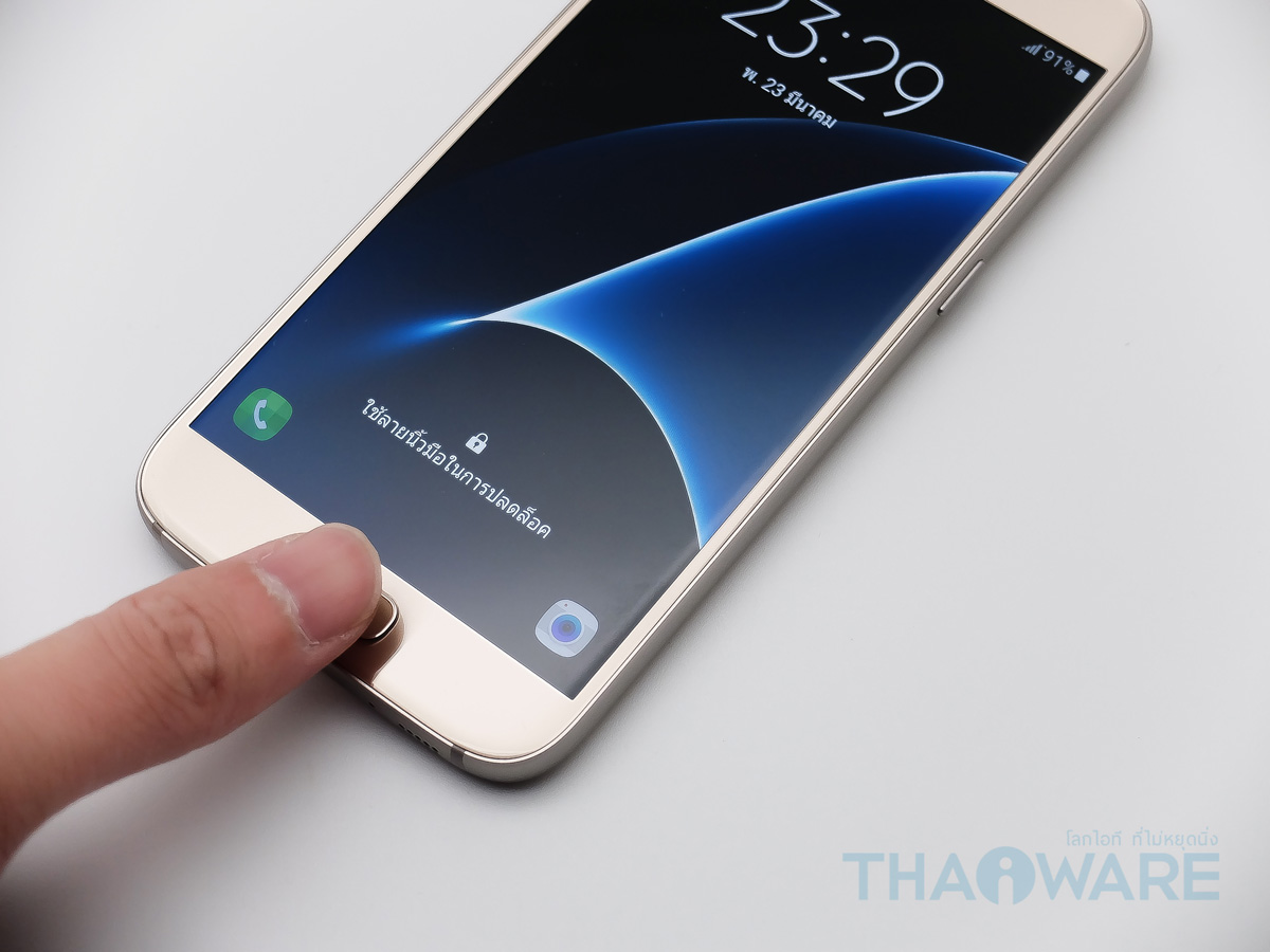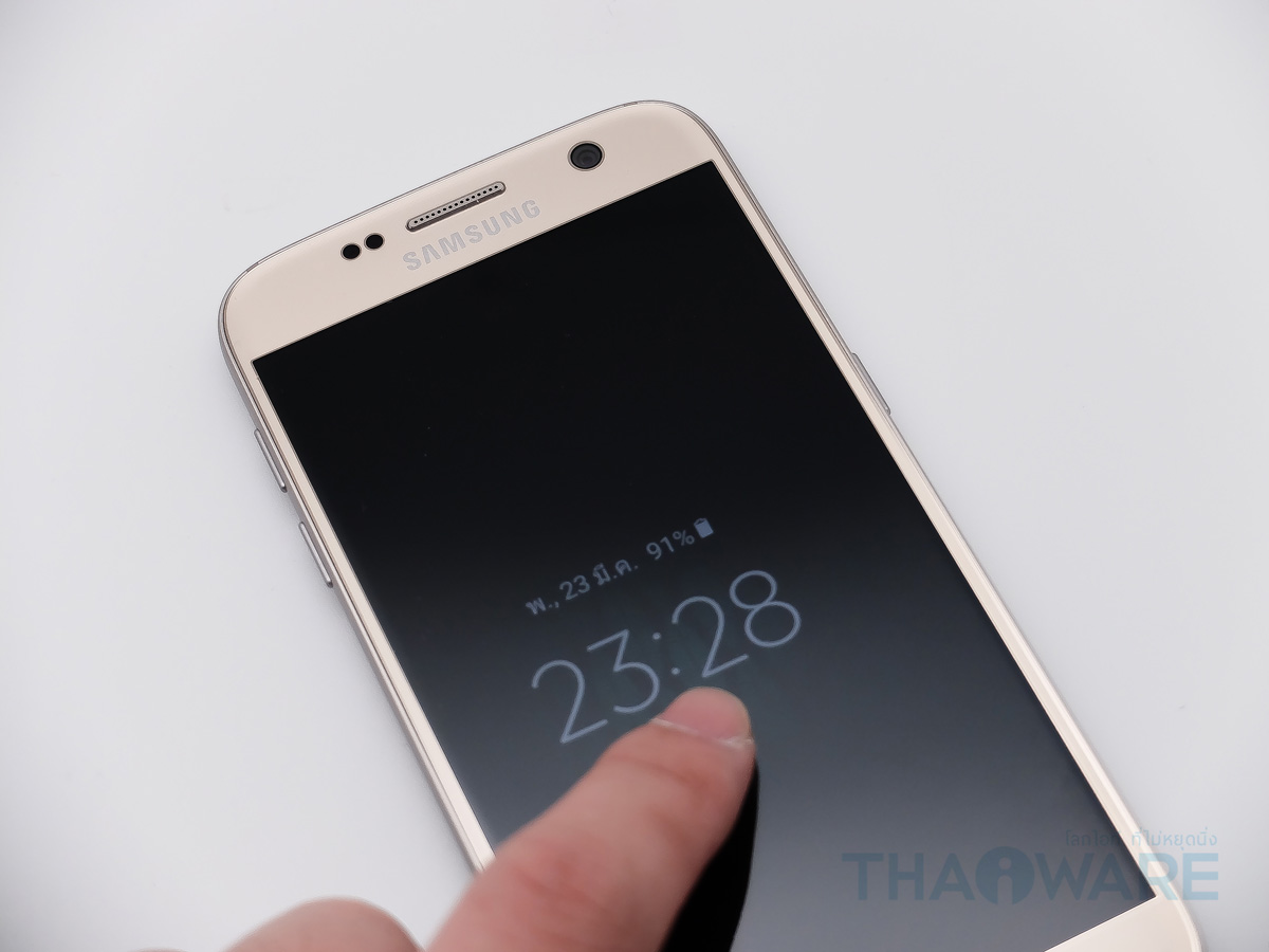 สำหรับฟังก์ชั่นสแกนลายนิ้วมือเพื่อปลดล๊อคนั้น ก็ยังใช้งานได้สะดวกสบายเหมือนเดิม ที่เพิ่มเติมคือเร็วและแม่นยำขึ้นไปอีก ตอน S6 ยังมีอนิเมทเล็กๆ หลังจากปลดล๊อค แต่บน S7 นั้น พอปลดล๊อคด้วยการสแกนลายนิ้วมือปุ๊บ ก็เด้งเข้า UI ของเครื่องทันทีให้ใช้งานอย่างรวดเร็ว ไม่ต้องรอเลย