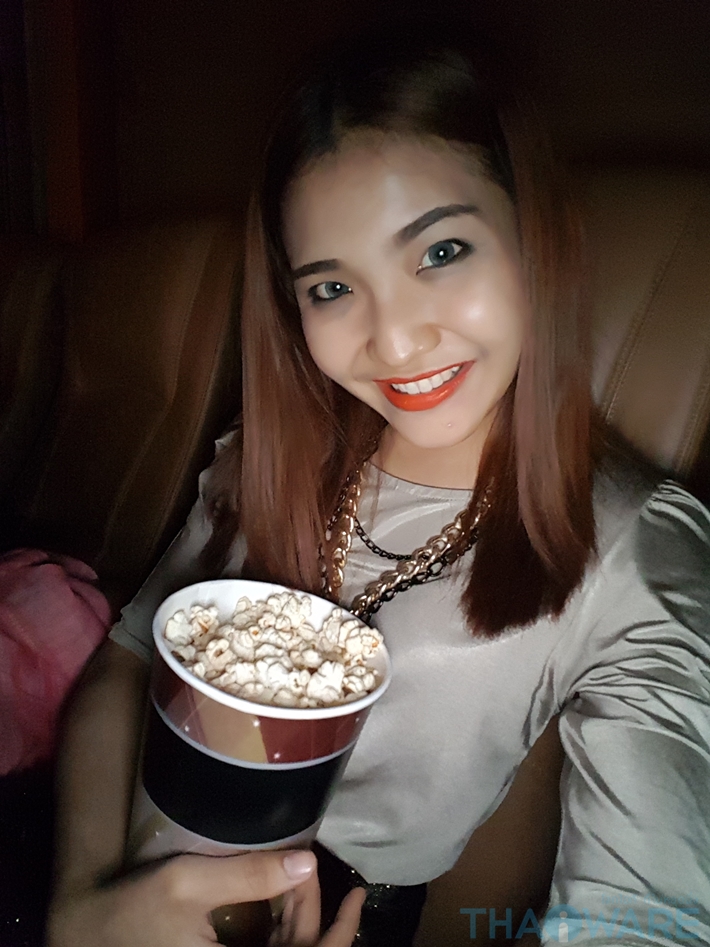 แม้จะถ่ายในที่มืดๆ รอหนังฉาย ผิวหน้าก็ยังดูนุ่มนวล ไม่แข็งเหมือนแสงแฟลชทั่วไป