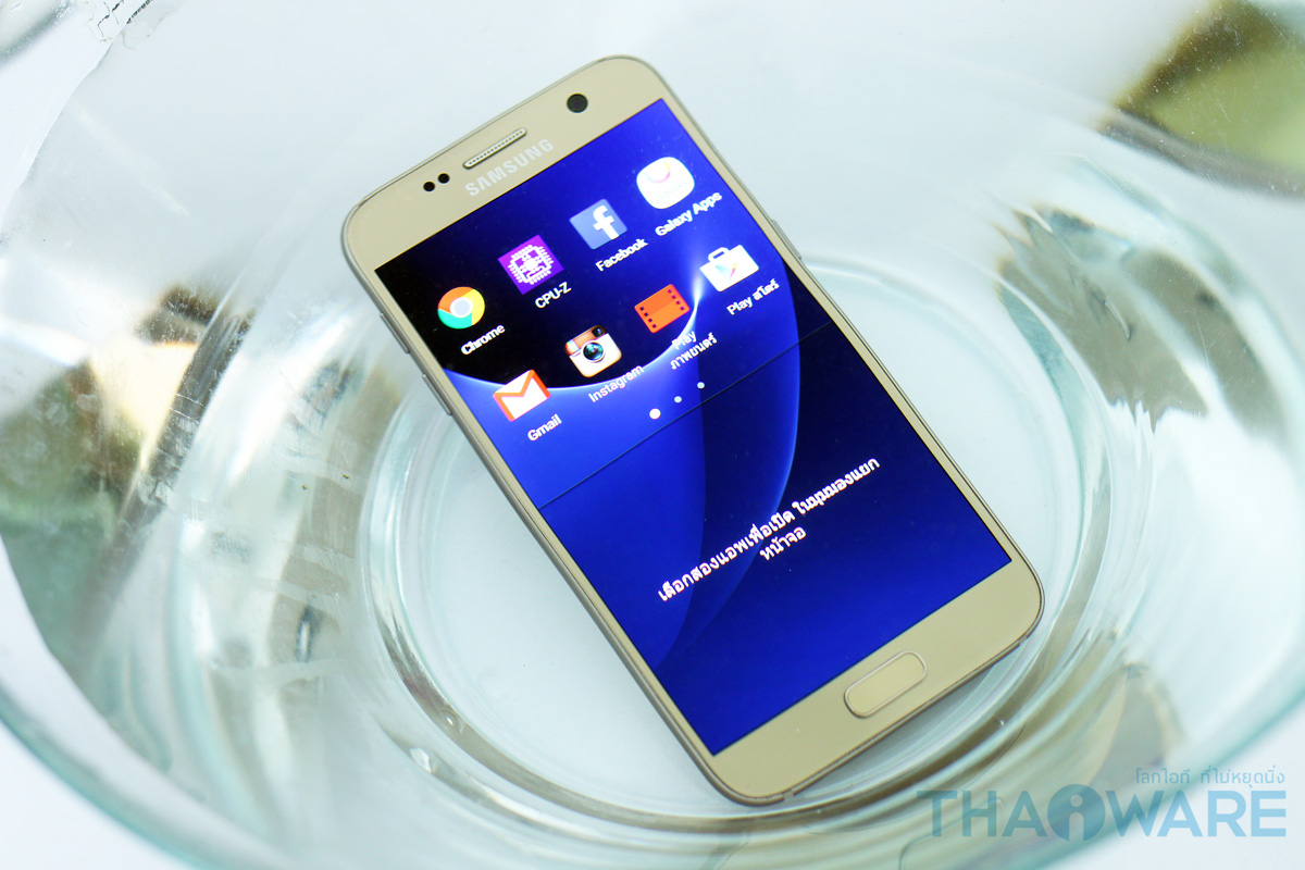 Samsung Galaxy S7 ได้นำฟีเจอร์กันน้ำกลับมาอีกครั้ง รวมทั้งกันฝุ่นด้วย ซึ่งเราจะได้ไม่ต้องระวังใช้มือถือมากขึ้น ไม่ว่ามือจะเปื้อนจะเปียก จะวางมือถือไว้ตรงไหนก็ไม่ต้องกลัวเปื้อน แต่หากใครจะเอา Galaxy S7 ไปถ่ายรูปใต้น้ำ คงต้องระวังข้อจำกัดกันหน่อย เพราะตัวเครื่องสามารถลงน้ำได้ลึกเพียง 1.5 เมตร นาน 30 นาทีเท่านั้น และยังไม่ค่อยถูกกับน้ำทะเลเท่าไหร่