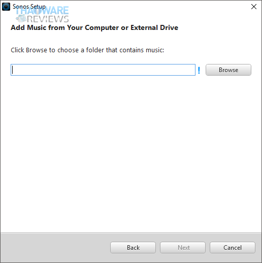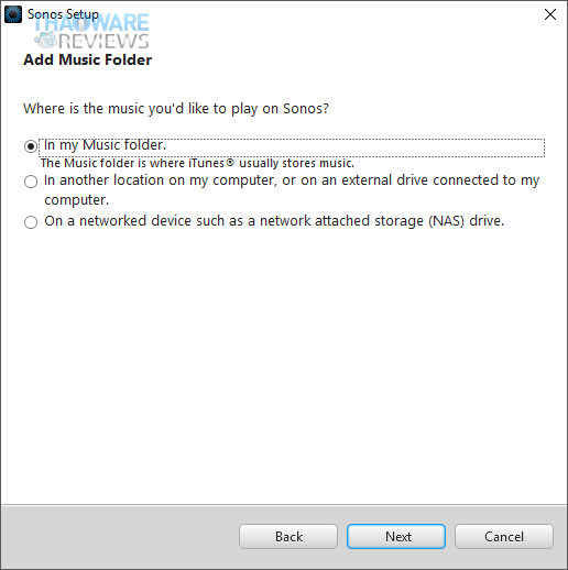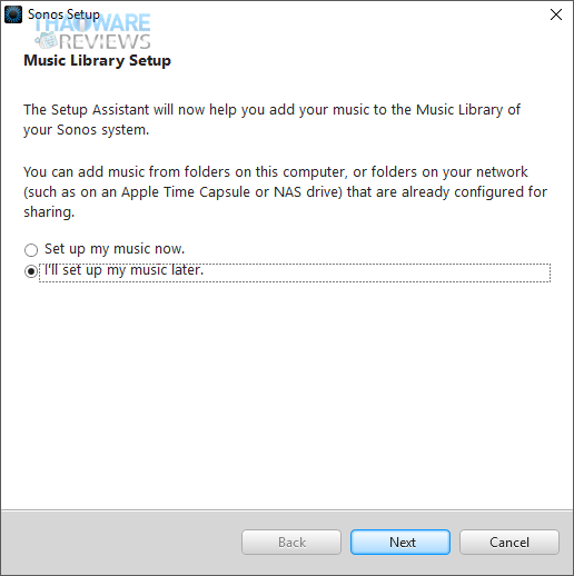 เลือกรุ่นของลำโพงที่เราเชื่อมต่อ งานนี้ก็จิ้มไป PLAY:5 (gen2) กด Next ไปต่อ โปรแกรมจะถามเราว่าจะเพิ่มตัว Music Library เข้าโปรแกรมเลยหรือไม่ ก็แล้วแต่สะดวกครับ เพิ่มทีหลังหรือตอนนี้ก็ไม่ต่างกัน แต่งานนี้ผมเพิ่มเลยดีกว่า