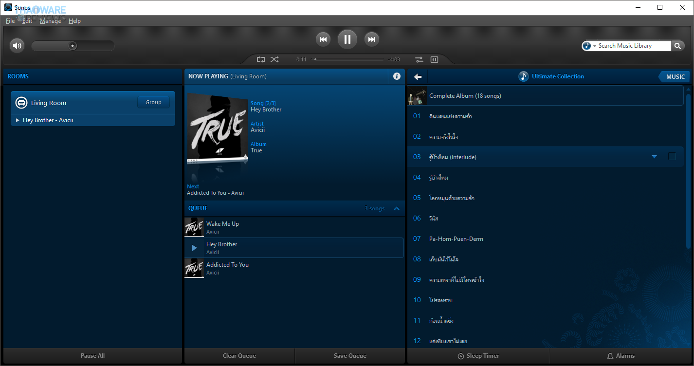 การจะมาควบคุมเพลงหน้าคอมพิวเตอร์ตลอดเวลามันก็ไม่ใช่ไลฟ์สไตล์ของวัยทีนอย่างเรา ซึ่งก็ไม่ใช่ปัญหาเพราะเราสามารถควบคุมเพลงผ่านสมาร์ทโฟนได้ด้วย ซึ่งความเจ๋ง คือ เมื่อเราเปิดแอปฯ บนมือถือขึ้นมา มันจะทำงานต่อจากโปรแกรม Sonos Desktop Controller บนคอมพิวเตอร์ได้ทันที รวมถึงการตั้งค่าโปรกรมทั้งหมดจะ Sync ร่วมกันระหว่างคอมพิวเตอร์และสมาร์ทโฟนแบบเรียลไทม์ ใช้งานได้ทั้ง iOS และ Android