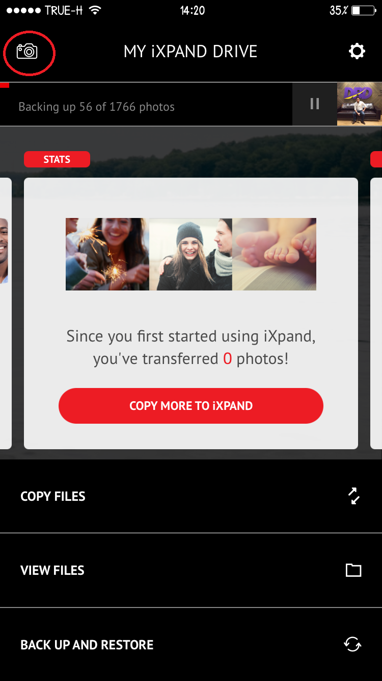 นอกจากการถ่ายภาพถ่ายคลิปแล้วค่อยแบ็กอัพไปไว้ที่ไดร์ฟแล้ว เราก็ยังสามารถถ่ายภาพหรือคลิปเก็บไว้ในไดร์ฟได้โดยตรงเลย ทำให้ไม่ต้องเสียเวลาแบ็กอัพกันทีหลัง ขั้นตอนก็แค่เสียบไดร์ฟเข้ากับ iPhone/iPad แอป iXpand Drive ก็จะเปิดขึ้นโดยอัตโนมัติ เมื่อเข้าแอปเรียบร้อยแล้ว ให้แตะที่ปุ่มรูปกล้องตรงมุมซ้ายบน (ภาพซ้าย) จากนั้นเครื่องก็จะเข้าสู่โหมดการถ่ายภาพ/วิดีโอ โดยสิ่งที่ถ่ายในโหมดนี้จะถูกเก็บไว้ในตัวไดร์ฟโดยตรง ไม่เปลืองเมมเครื่องเลยครับ