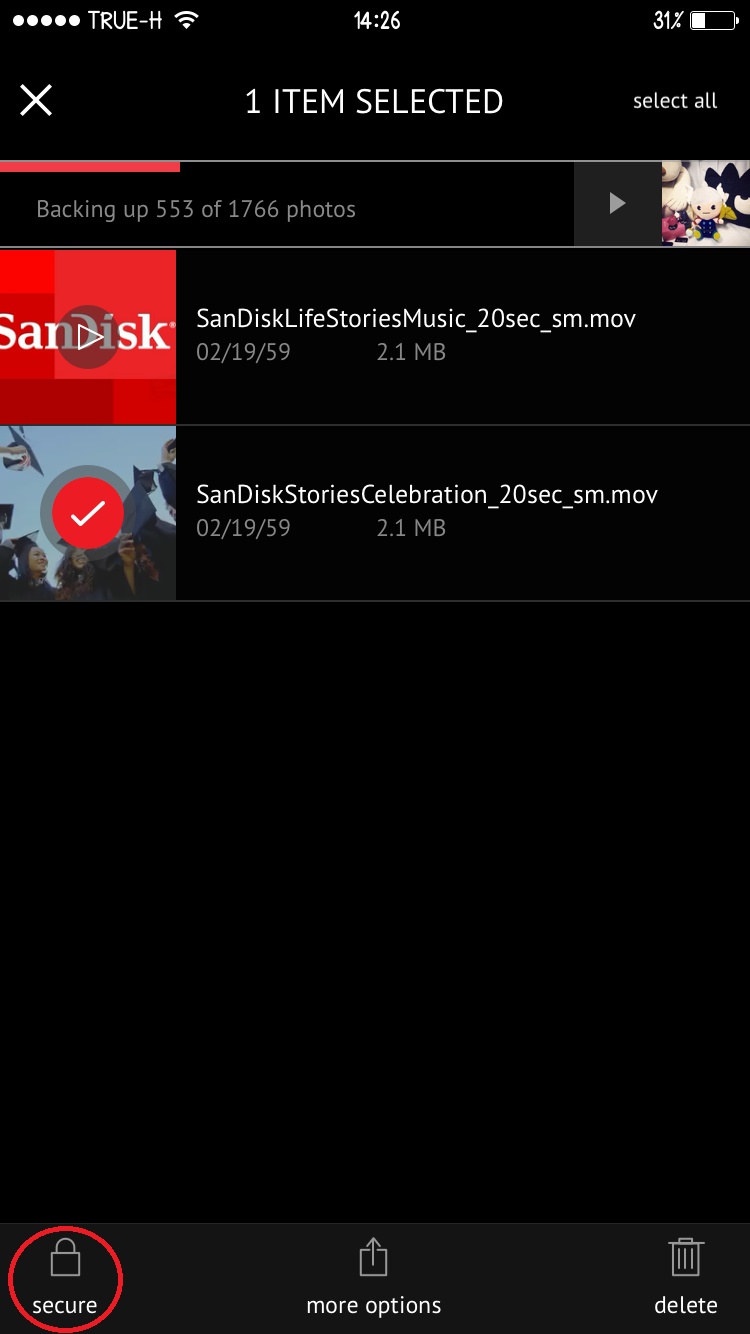 ไดร์ฟ SanDisk iXpand ไม่ได้มีดีแค่เพียงการแบ็กอัพภาพถ่ายและวิดีโอ แต่มันยังมีตู้เซฟเก็บสำหรับเก็บไฟล์ส่วนตัวของคุณที่ไม่อยากให้ใครเปิดดู อุ่นใจได้ว่าถ้าไดร์ฟเกิดสูญหาย ความลับของคุณก็ไม่รั่วไหล ขั้นตอนก็ให้เลือกไฟล์ที่ต้องการเก็บเข้าตู้เซฟ แล้วแตะที่ปุ่มแม่กุญแจตรงมุมล่างซ้ายของหน้าจอ (ภาพซ้าย) ในการใช้งานฟังก์ชั่นตู้เซฟครั้งแรก เราต้องทำการสร้างรหัสผ่าน (ภาพกลาง) เมื่อเรียบร้อยแล้ว ไฟล์ที่เป็นความลับของเราก็จะถูกเก็บในโฟลเดอร์ SanDiskSecureAccess Vault และหากต้องการเข้าถึงไฟล์ในโฟลเดอร์นี้ ไม่ว่าจะเป็นการเข้าผ่านอุปกรณ์ iPhone/iPad หรือเข้าถึงผ่านเครื่องคอมฯ ก็จะต้องทำการป้อนรหัสผ่านให้ถูกต้องเสียก่อน ถึงจะเปิดโฟลเดอร์ได้