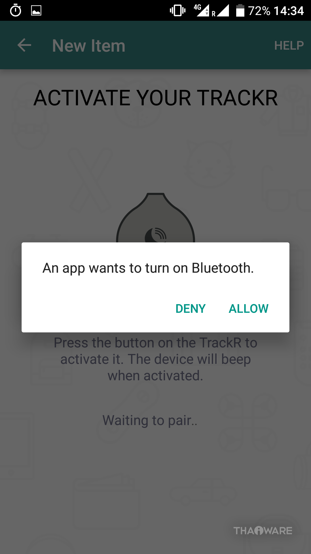 เมื่อจัดแจงใส่ถ่านเรียบร้อยแล้ว ก็ดาวน์โหลดแอป TrackR - Lost Item Tracker จาก AppStore / Play Store ติดตั้งลงบนเครื่อง iPhone, iPad, Android จากนั้นเปิดแอปแล้วเริ่มพร้อมๆกันเลย