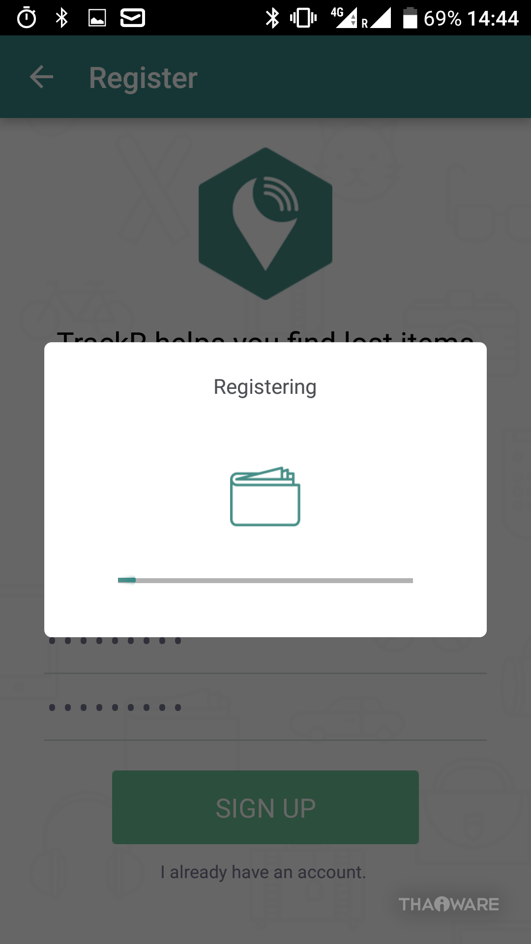 สำหรับอุปกรณ์ที่เอาเจ้า TrackR Bravo ไปติด ผูก ห้อย ก็มีหลายอย่าง ในทีนี้ผมเก็บเจ้า TrackR Bravo ไว้ในกระเป๋าสตางค์ จัดการ Sign Up ในขั้นตอนนี้ แนะนำให้เปิด Bluetooth ไว้ตลอดเวลา และลงทะเบียนเพื่อใช้งาน Crowd GPS