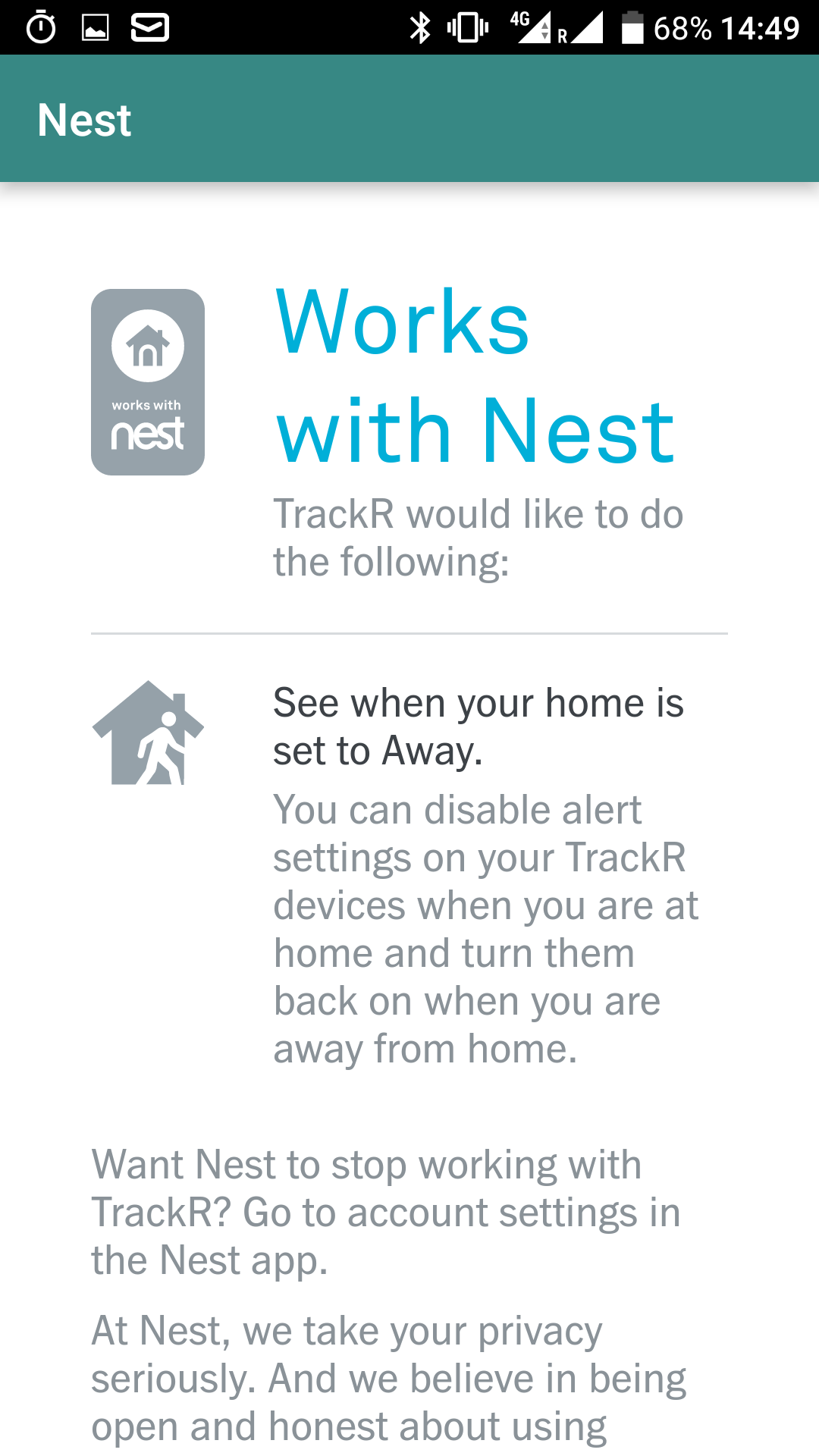 หลังจากเชื่อมกับ Nest ในหน้าจอนี้ เมื่อเลื่อนลงมาจะมีปุ่ม Accpet ให้กด จากนั้นจะมี Pin Code ให้จดเอาไว้ หรือกดค้างเพื่อ Copy Pin Code นำมาป้อนใน Nest เพื่อผูกค่าการแจ้งเตือน เมื่อผูกเรียบร้อยแล้ว หากคุณอยู่บ้าน (เครื่องจับตำแหน่งพิกัด) ก็จะไม่แจ้งเตือน