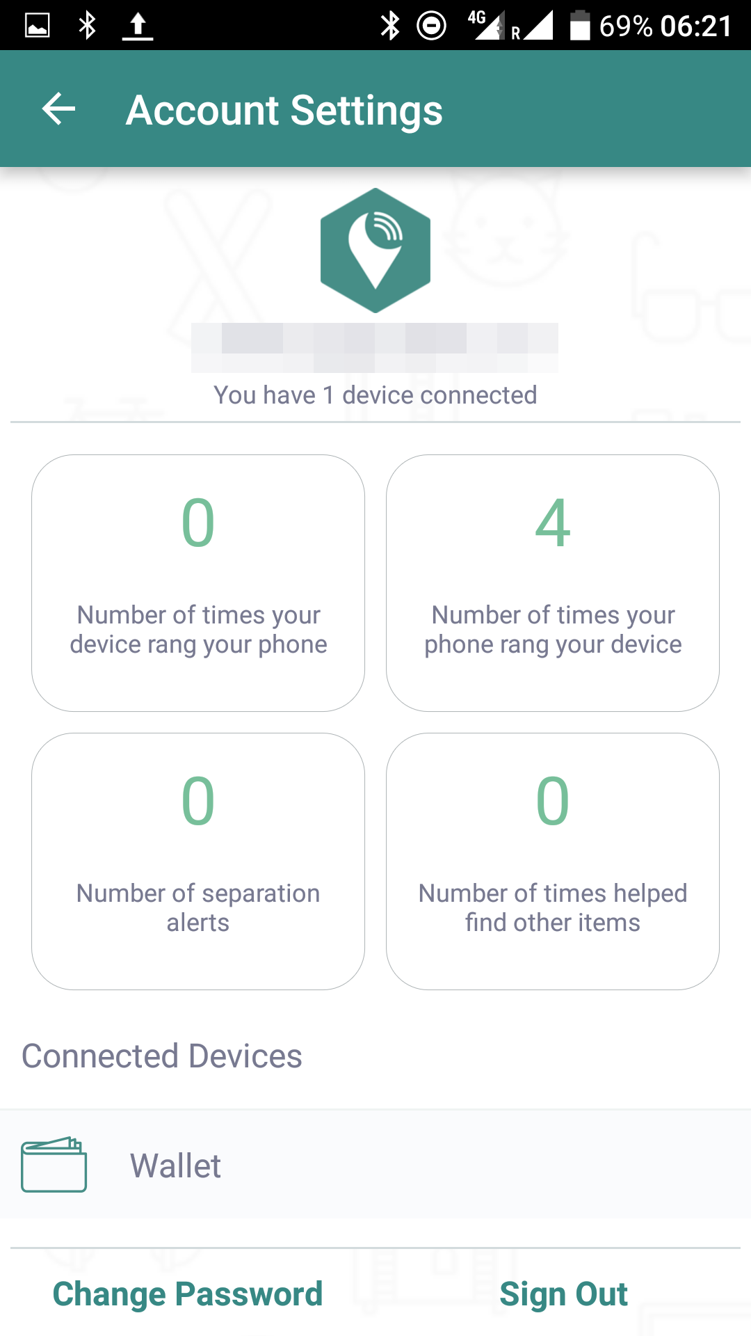 สำหรับบัญชี TrackR จะมีแสดงข้อมูลจำนวนครั้งการแจ้งเตือน มือถือกับอุปกรณ์ อุปกรณ์กับมือถือ การแจ้งเตือน และการค้นหาอุปกรณ์อื่นๆผ่าน Crowd Locate GPS ให้เราทราบด้วย