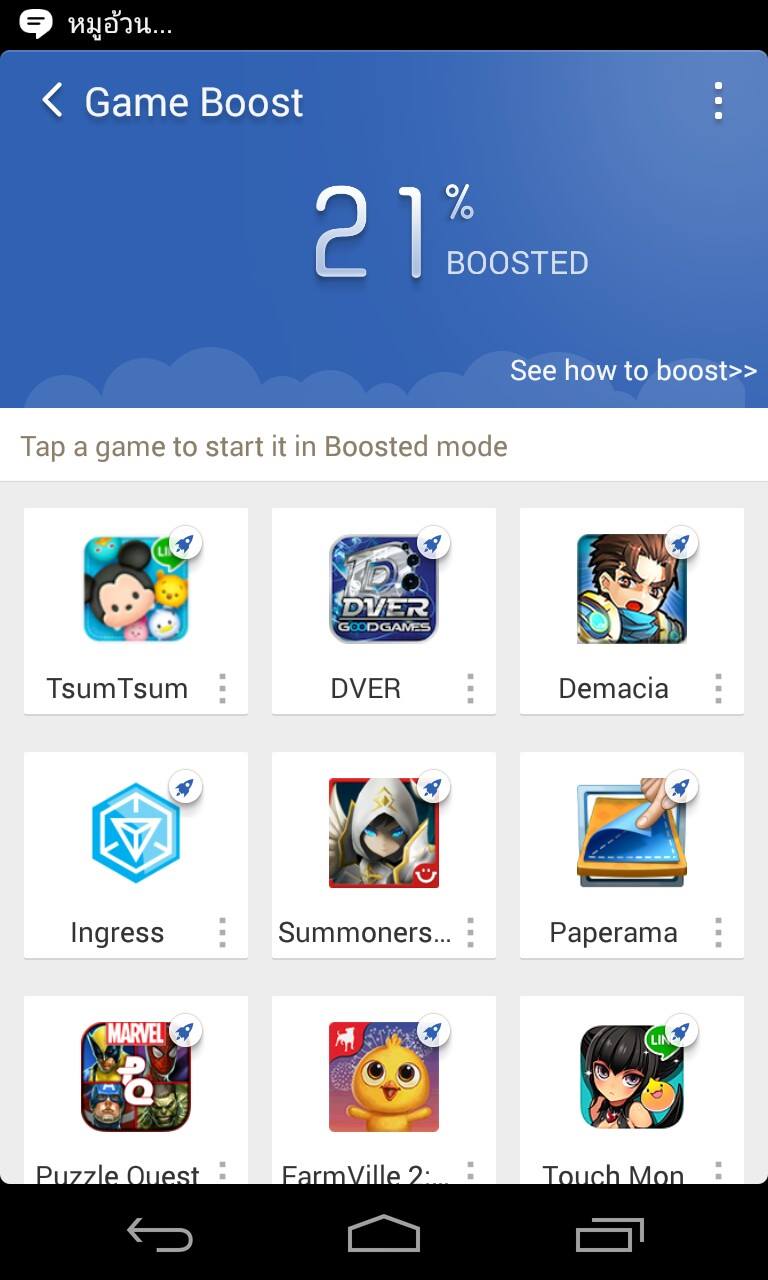 ลองลงแอพนี้ เคลียร์แรม แล้วเปิดเกมส์ผ่านแอพนี้ดูนะครับ http://software.thaiware.com/11610-Clean-Master-App.html จะมีส่วนของ Game Boost ของเมนูเพิ่มหน่วยความจำครับ |